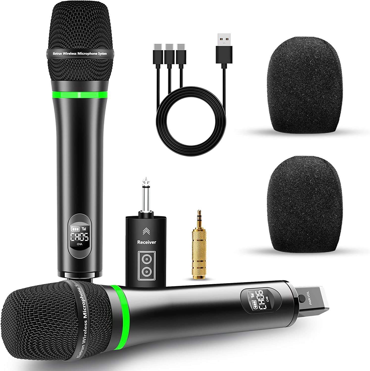 Bietrun Rechargeable Wireless Microphone for Singing, Karaoke,Dual Metal Cordless Handheld Dynamic Wireless Mics with 32FT Bluetooth, UHF 240FT Range for 1/4'',1/8''Output,PA System,Dj,Mixer,Church