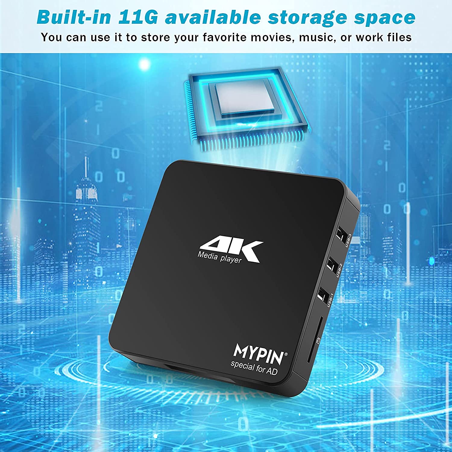 - 【Powerful Compatibility & Internal 11G memory】-- It can play from micro SD card, USB flash drive up to 256GB and HDD up to 8TB; including FAT32, exFAT and NTFS. The device has a built-in 11G memory, which can store your favorite movies or photos. Dual USB ports for connecting two devices, Support mouse and keyboard, you can remotely control by mouse, it helps to make your TV smarter by adding the ability to play videos, music, and photo slideshows