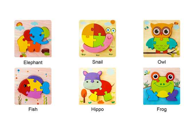 Let your little baby marvel over the pretty shapes and bright colors in these animal-patterned puzzles. The pack of six includes shapes to help them fill in the corresponding puzzle and build a elephant, snail, owl, fish, hippo, frog.