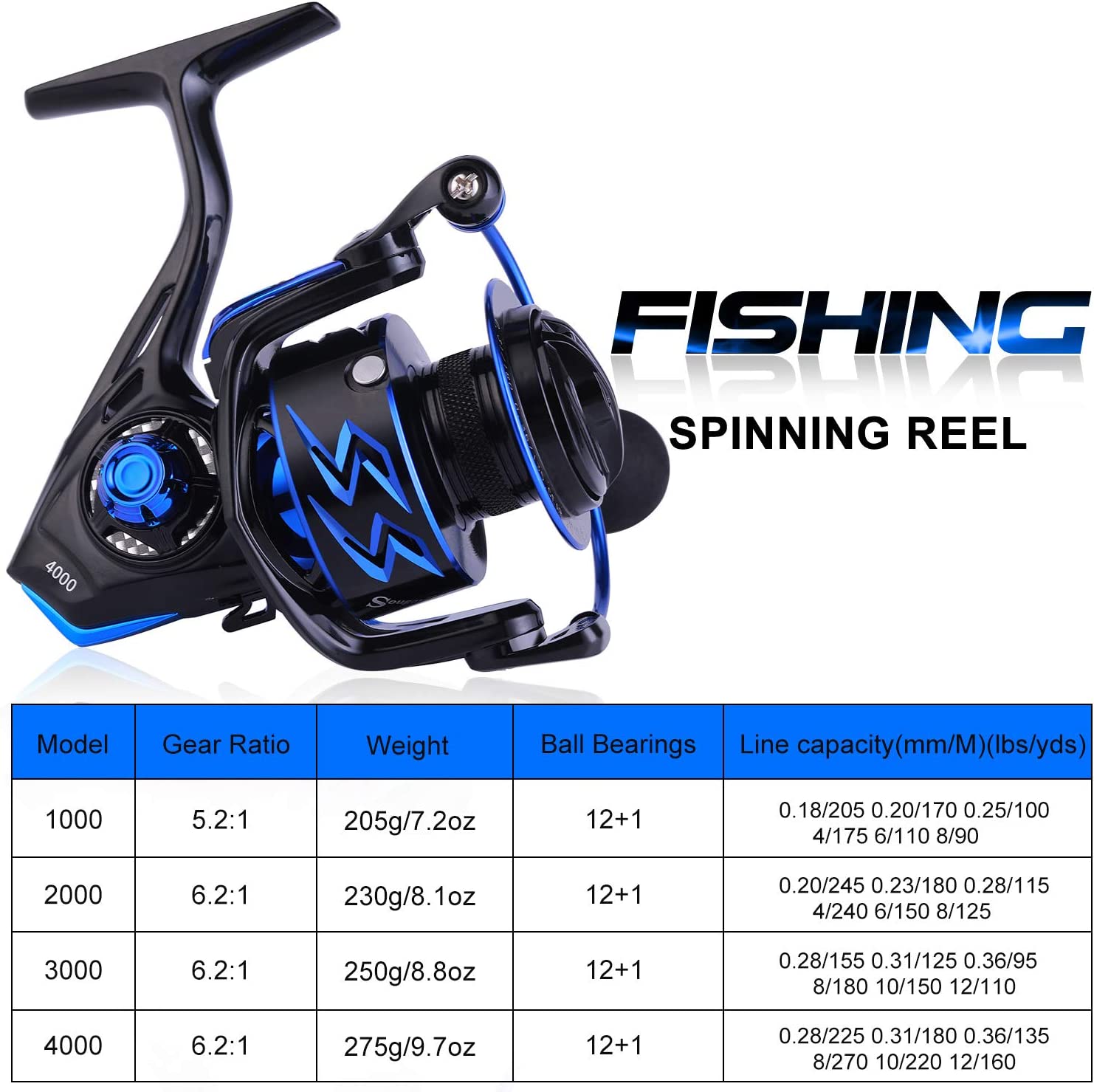 - Smooth Performance:12 high-quality ball bearings and an instant stop unidirectional anti-reverse bearing make it have super smooth performance.The Sougayilang spinning reel features a lightning fast 6.2:1 gear ratio as well as a buttery smooth,the high speed retrieve helps every angler battle the strong, fast runs of the biggest fish and the moderate speed is perfect for finessing in your next trophy.