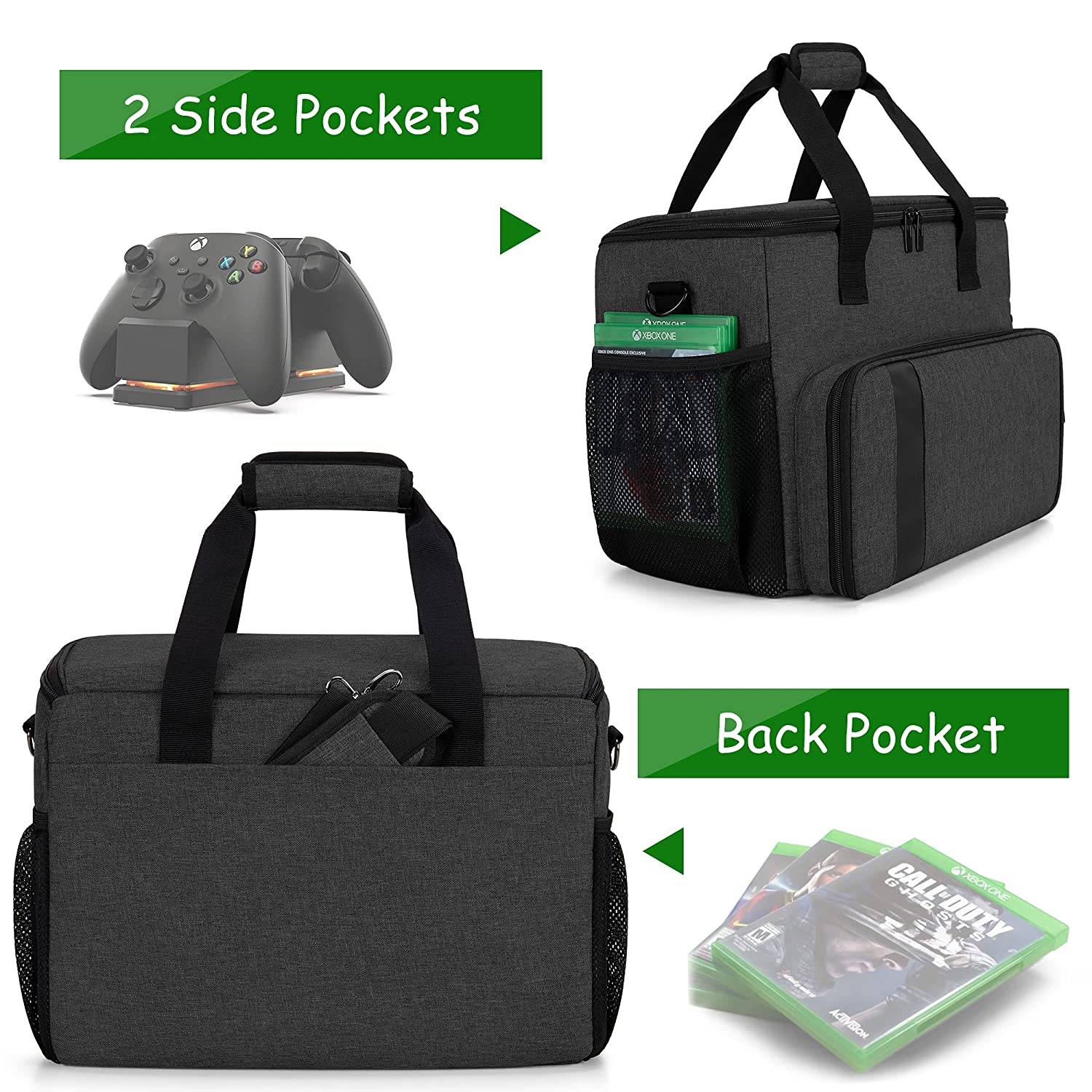 WELL ORGANIZED: Side mesh pouches are used for storing game discs or other game accessories. Separate back layer is attached for ipad or other personal items. (Bag only, NOT includes console and accessories.)protects the equipment away from bumping and damage.