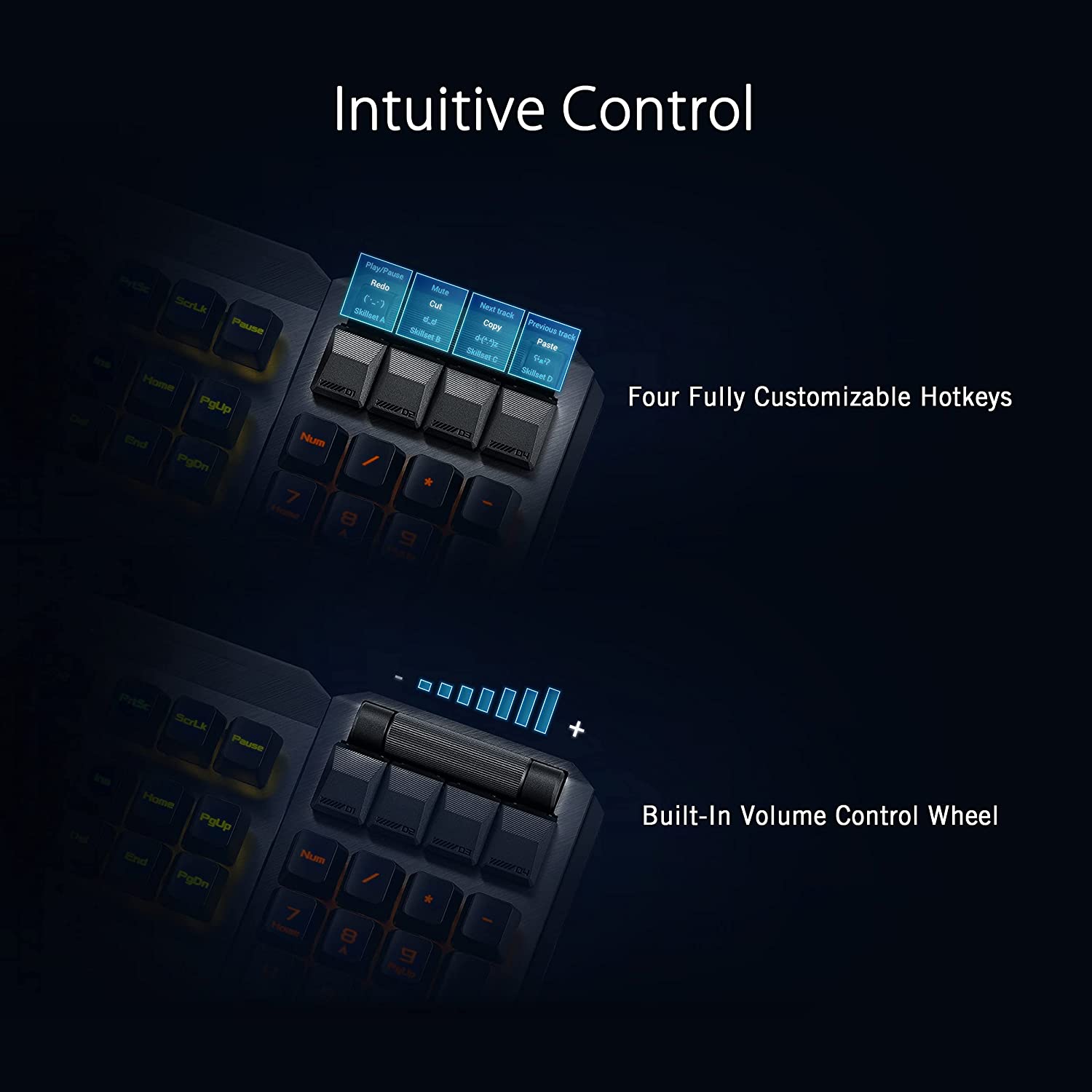 The ROG Claymore II elite gaming keyboard delivers a host of features designed to give you exciting new ways to play. Create your ideal gaming setup by placing the new detachable numpad on whichever side you prefer; then choose between wired or wireless mode and light it all up with Aura Sync. And once you’re in battle, assume full tactical control with ROG RX Optical Mechanical Switches and customizable hotkeys. The detachable numpad can be attached on either side of the keyboard, or it can be removed entirely if you prefer to use ROG Claymore II in TKL mode (80%). It can also be programmed to be used as a macro keypad for complex in-game commands. This flexibility gives you various combinations to suit your play style and gaming setup. ROG RX Red and RX Blue Optical Mechanical Switches offer consistent, wobble-free keystrokes with a superfast 1 ms response and 100-million-keystroke lifespan. These premium switches have a hollow-square stem design and they feature embedded RGB LEDs providing all-round per-key lighting. Play in wired or wireless 2.4 GHz RF mode, with a superfast 1 millisecond response time. A 4000 mAh battery and energy-efficient design give you up to 43 hours of nonstop gaming in wireless mode on a single charge, even with RGB lighting on. 30 minutes of USB-C fast charging* allows ROG Claymore II to be operated for up to 18 hours (lighting off). The fast-charge function can be switched off to use the provided USB passthrough for convenient connection to other devices. The detachable numpad includes four media control keys that can be programmed into hotkeys for convenient productivity shortcuts or macro in-game commands. There’s even a built-in control wheel for quick volume adjustment. With wireless Aura Sync RGB, the entire color spectrum and a range of dynamic lighting effects are at your command. Individually lit keys allow you to create a keyboard that’s uniquely yours. Customize and shine in your own way, wirelessly.