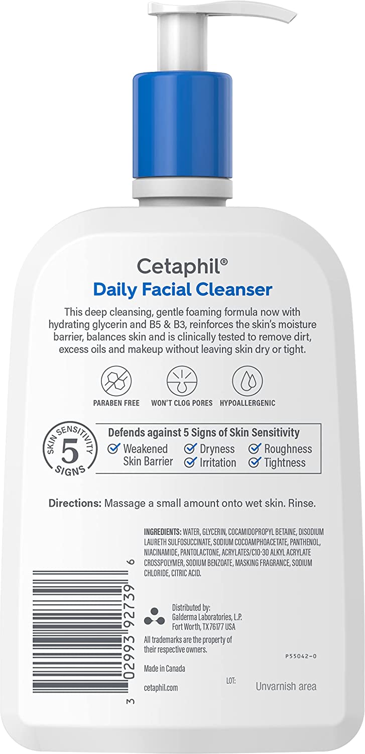 Face Wash by CETAPHIL, Daily Facial Cleanser for Sensitive, Combination to Oily Skin, NEW 20 oz, Gentle Foaming, Soap Free, Hypoallergenic