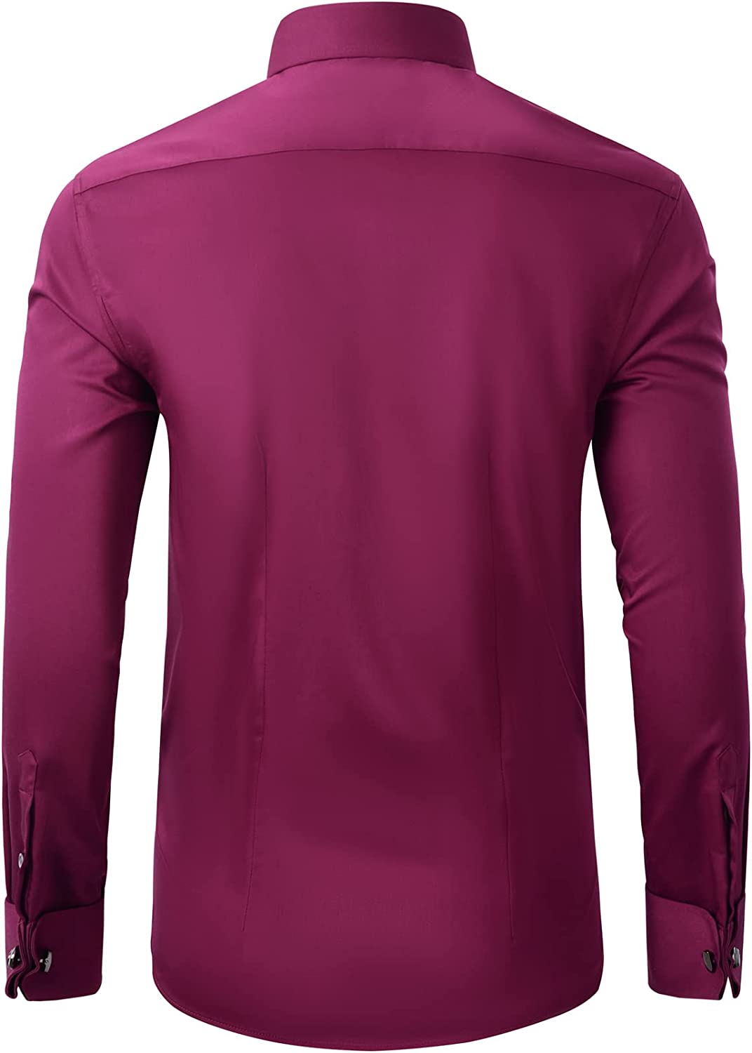 Gollnwe Men's Slim Fit French Cuff Stretch Bamboo Solid Dress Shirt