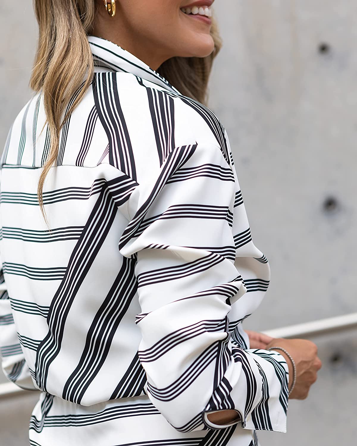 Hotouch Women Button Down Shirts Office Drop Shoulder Oversized Blouse Long Sleeve Boyfriend Dress Shirt with Pockets