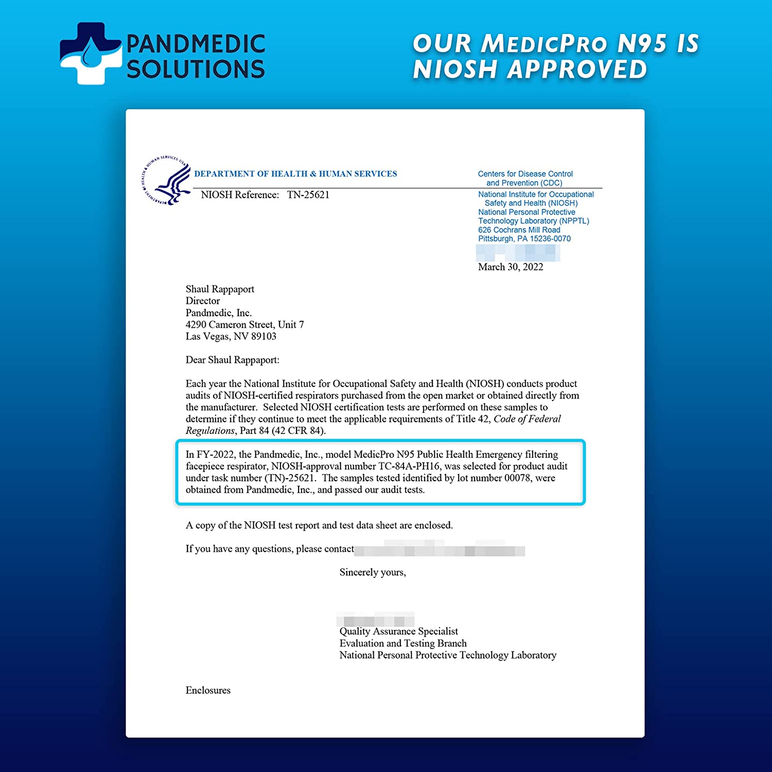 MADE IN USA, Manufactured at PandMedic’s certified facility located in Las Vegas, Nevada - Registration Number: 3016785550
