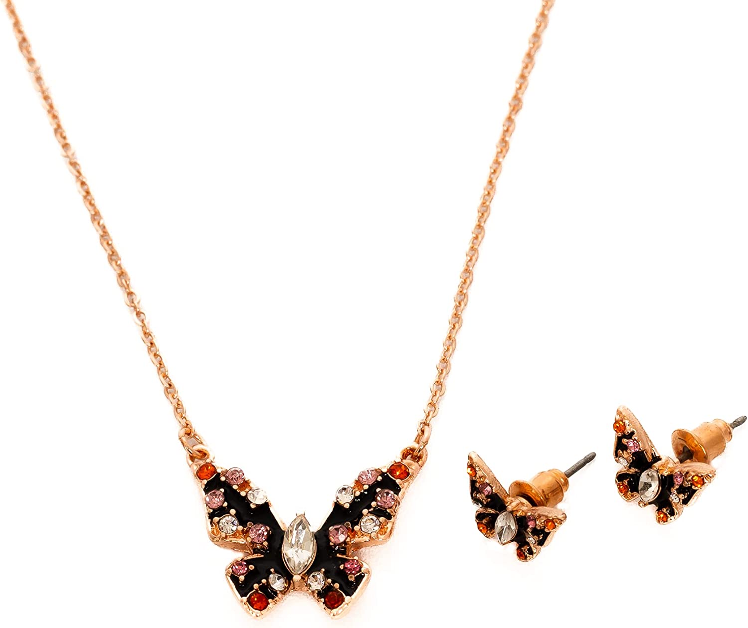 GUQILA Butterfly Jewelry Set, Diamond 18K Gold Butterflies Pendant Necklace Inlaid Zircon Butterfly Bracelet Charm Hollow Butterfly Earrings Jewelry Accessories for Women Girls Valentine's Day Gift