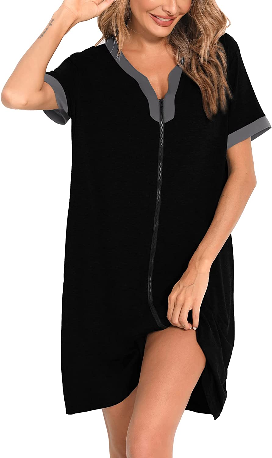 • ❤【Ideal Gift】The zip up nightgowns for women is your good gift choice to your wife, mom, daughter or friends, suitable for lounging around the house, loose and casual style, make you feel comfortable and relaxed.