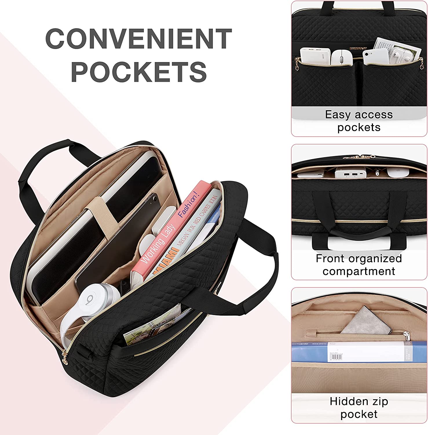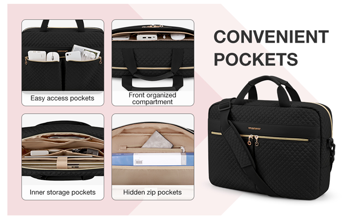• LONG LASTING- Made of durable water resistant polyester fabric, with metal zippers to provide a sturdy and reliant using experience. It's perfect for professional office work, business travel, weekend getaway or school life. Its quilted look can serve as a shoulder bag, office bag, laptop carrying bag, laptop crossbody bag, business bag for women.