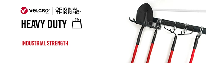 Industrial Strength Hold The VELCRO Brand Professional Grade Heavy Duty Fasteners feature a strong, superior hold for securing items indoors or outdoors. The superior holding power of these Industrial Strength hook and loop tape strips are ideal for extreme conditions and for items that require a little extra holding power. Designed for use in a wide range of indoor or outdoor applications, the range of Professional Grade Fasteners provides an easy application with the security and peace of mind that items will be safe stored, securely affixed, and protected. Choose from a Variety of Industrial Strength Hook and Loop Options Whether seasonal items need to be stored in the garage or basement, tools hung in the outdoor shed, lights affixed in the outdoor patio, or toll transponder held to a vehicles dashboard, VELCRO has the solution for your heavy duty needs for garage organization and storage and more. These fasteners are designed to maintain long-term attachment when they are infrequently opened and closed. VELCRO s Industrial Strength Fasteners provide a secure and reliable hold for use at home, office, car, garage, or anywhere a strong hold is required. Double Sided VELCRO Brand hook and loop tape are designed for heavy duty applications and hold up to 10 pounds, double sided adhesive tape strips are a versatile tool for garage storage and organization,