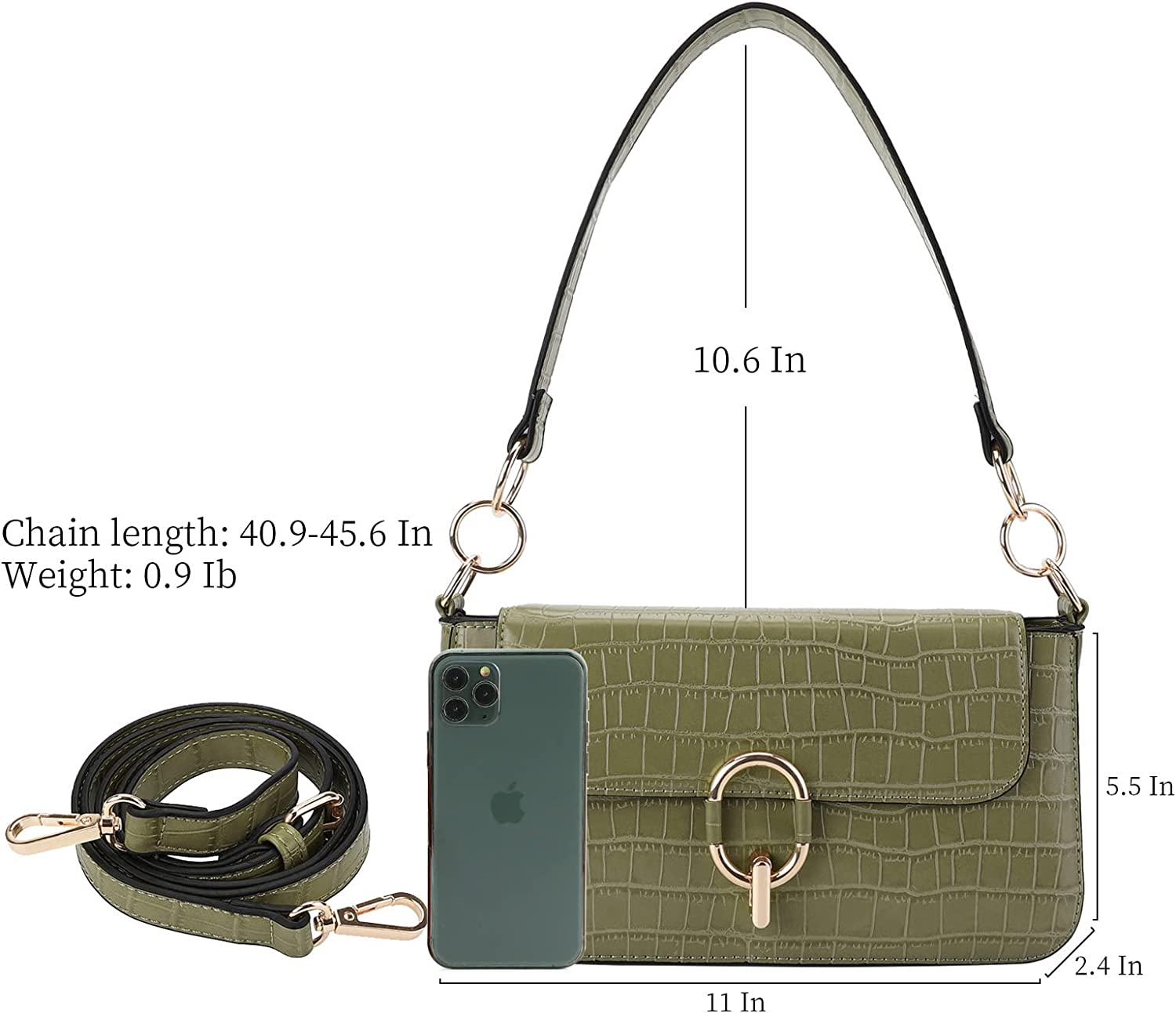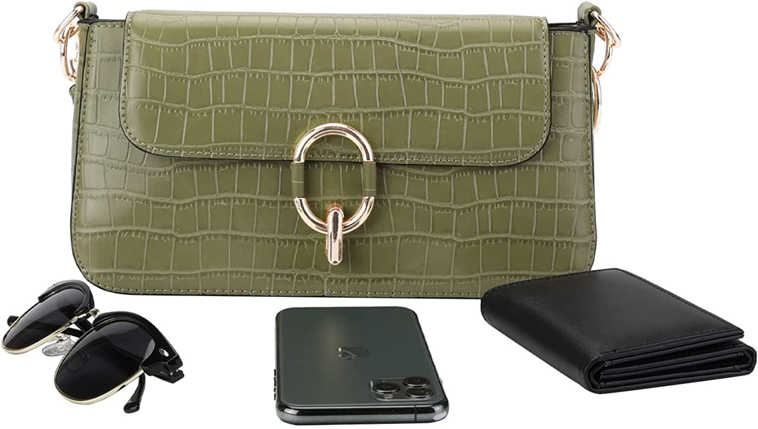 • ❤[Exquisite Design]: Crocodile bags with slim shapes give the small shoulder purse a classic look. Smooth croc-embossed patterns make the bags look more shiny in the sunlight and unique than others. can be used for working, shopping, dating, traveling, parties, etc. The main pocket fits all sizes of phones, roomy enough to hold your wallet, keys, cell phone, cosmetics, sunglasses, etc.
