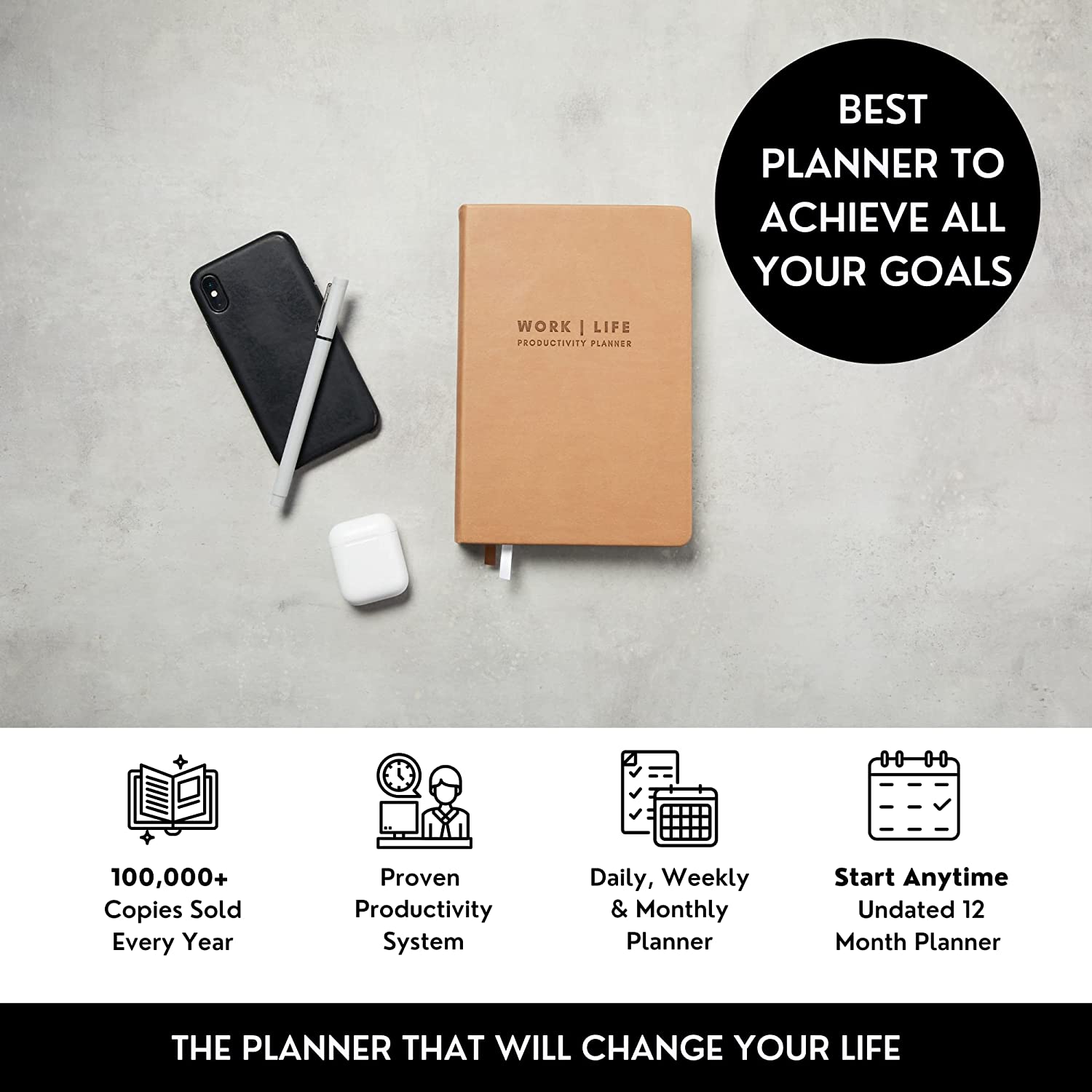 ✅ SAY HELLO TO THE PLANNER THAT WILL CHANGE YOUR LIFE: Crush your personal and professional goals with Productivity Store’s flagship planner. Get that promotion, start that business or break that bad habit. Evidence-based layouts that increase goal-setting success, happiness and work-life balance.