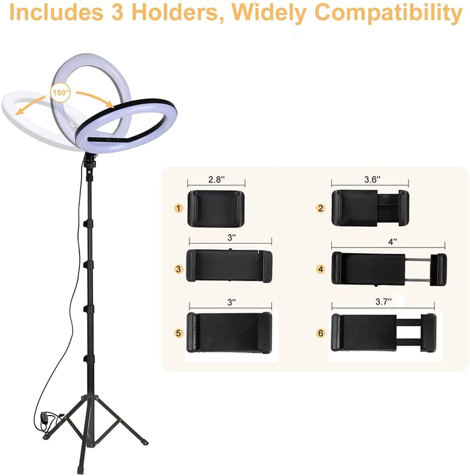 • 【Tiktok Ring Light with Tripod】12-in Camera Stand with Ring Light with 360°rotatable ball joint. Phone Tripod with Ring Light and 164 pcs of advanced LED light bead,with long lifetime.