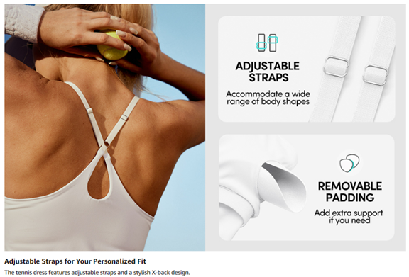 Customize your fit- The women dress is designed with adjustable straps that accommodate a wide range of body shapes. Also, it features a built-in bra equipped with removable pads for the support you need.