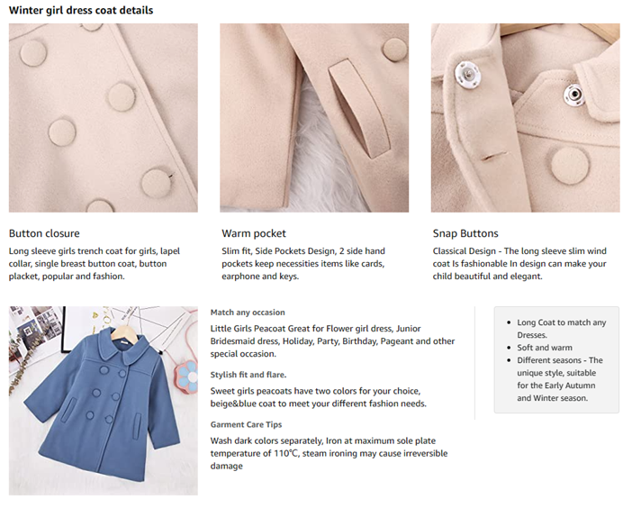 ??【Lightweight, Easy to Care】Cotton Blend, pea coats for toddler girls. Handwash only. makes your kids warm in autumn, spring and warm winter seasons.