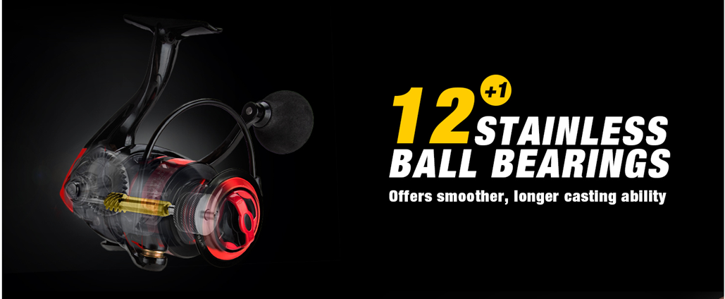 • 【Super Smooth Spinning Reel】You will love this powerful Ghosthorn fishing reel, as the max drag is 34.3 Lbs with gear ratio 5:2:1. The 12+1 stainless steel ball-bearings ensures its ultra-smooth performance for travel Saltwater Freshwater bass salmon trout fishing.