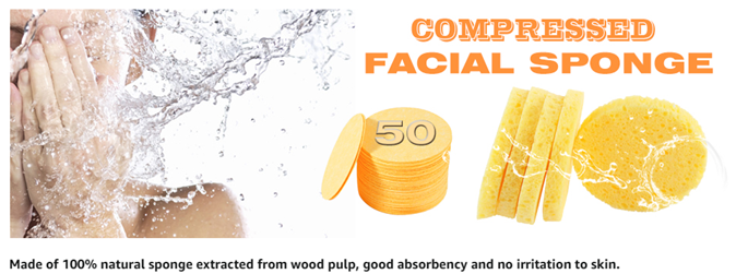 - 【Package & Size】: 50-count little round cellulose facial sponges. 2.8" dia. x 0.32" thick after hydrated