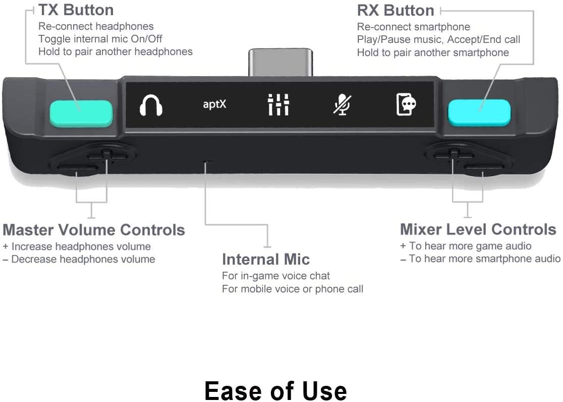 • [Enhanced Game Play] Apart from listening to game audio on your Bluetooth headphones, you can also answer phone calls, chat with friends on Nintendo Switch Online, Discord, WhatsApp or FaceTime, and listen to Spotify or YouTube Music. All these and much more with your iOS or Android Smartphone.
