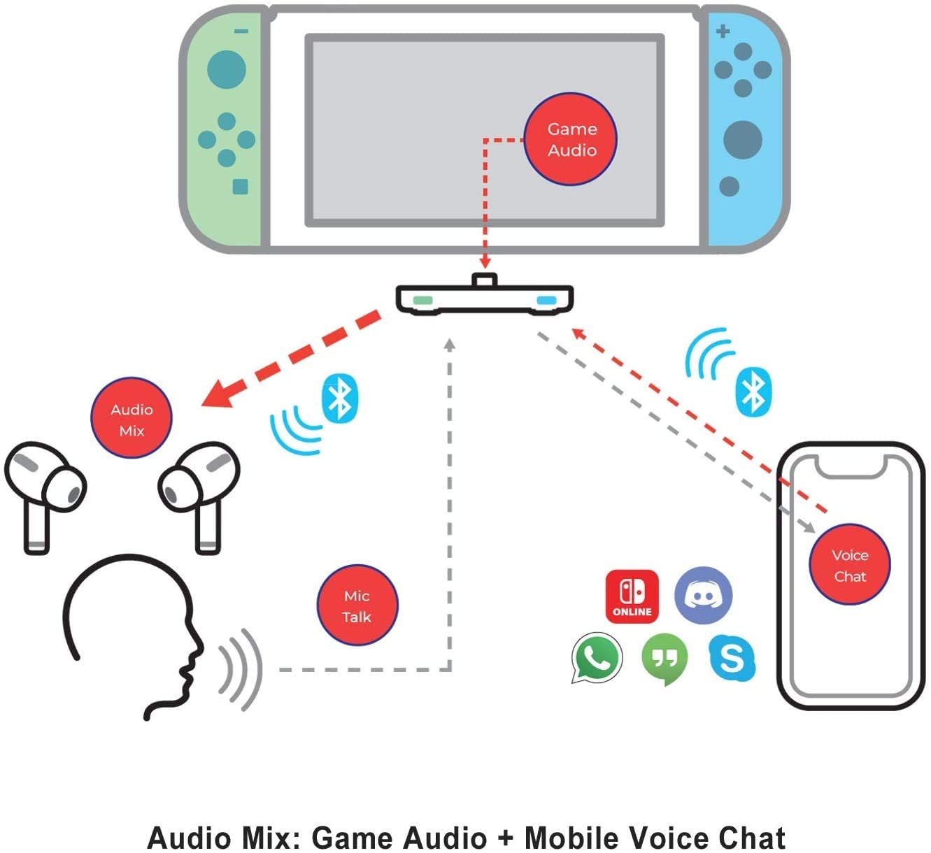 • [2-in-1 Audio Mixer] World's 1st Bluetooth adapter for the Nintendo Switch Family that let you connect your beloved Bluetooth Headphones to the Switch and Smartphone simultaneously. Talking or listening to music on the phone while gaming on the Switch couldn't be easier.