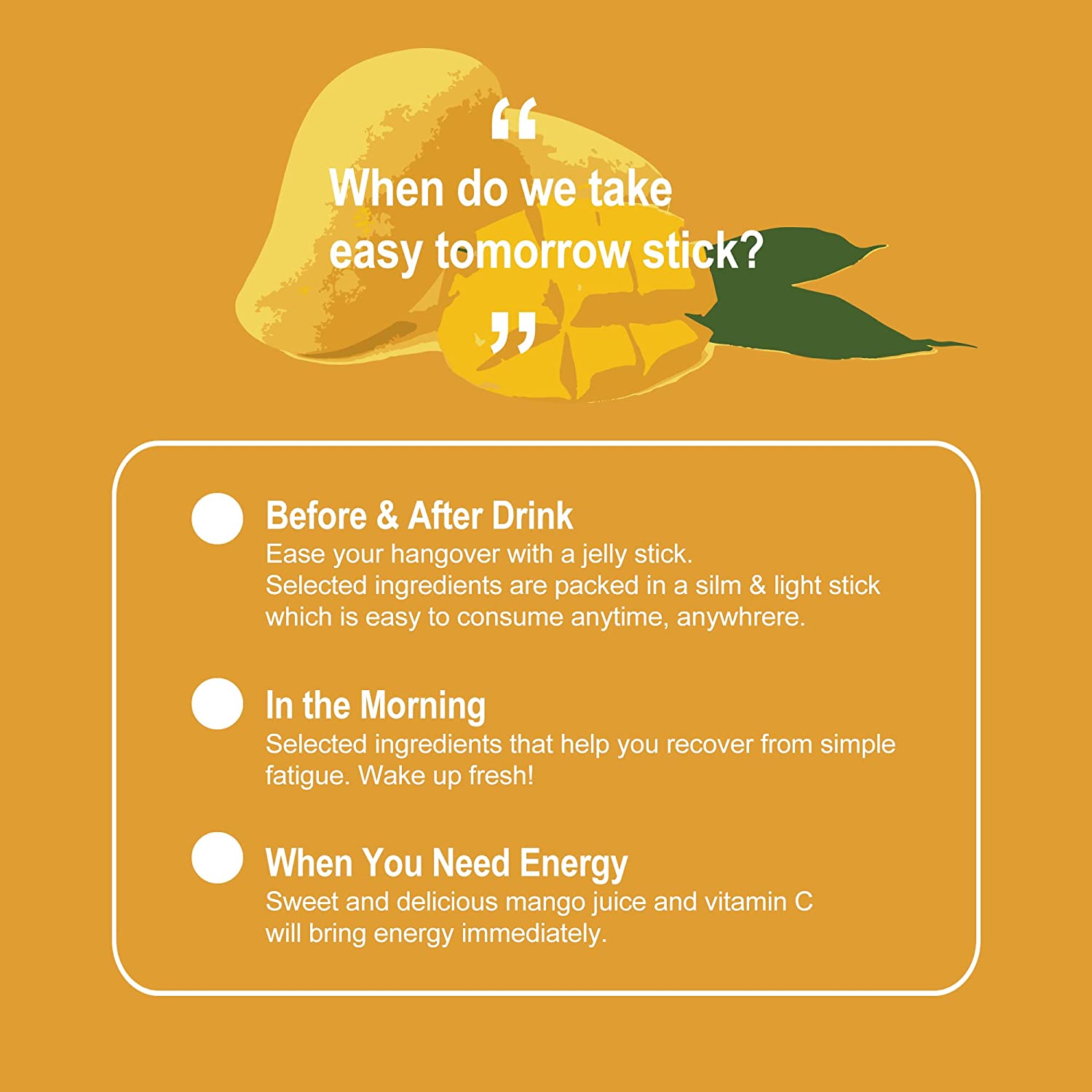 Easy Tomorrow Jelly Stick Before/After Drink Alcohol, After Party Recovery & Relief for Great Night & Better Morning, Party Vacation Aid, Liver Cleanse Detox, Mango Flavored, 상쾌환, 20 Packets