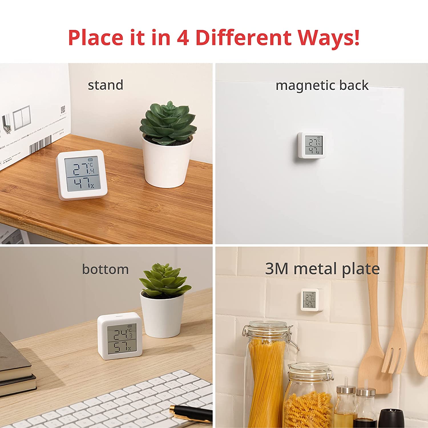 Easy Installation - Add it to SwitchBot App in seconds, and tear off the screen protector, your Meter is ready to go. With the magnetic back, 3M metal plate and stand, you can place it anywhere, a magnetic surface, a wall, or a flat surface. ℃/℉ can be easily switched from SwitchBot Meter itself. In the Switchbot app, you can also calibrate the temperature reading. The batteries included have a life of 1 year.