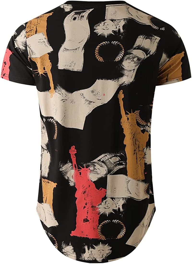 YININF Mens Hipster Hip Hop All Over Graphic Longline T-Shirt