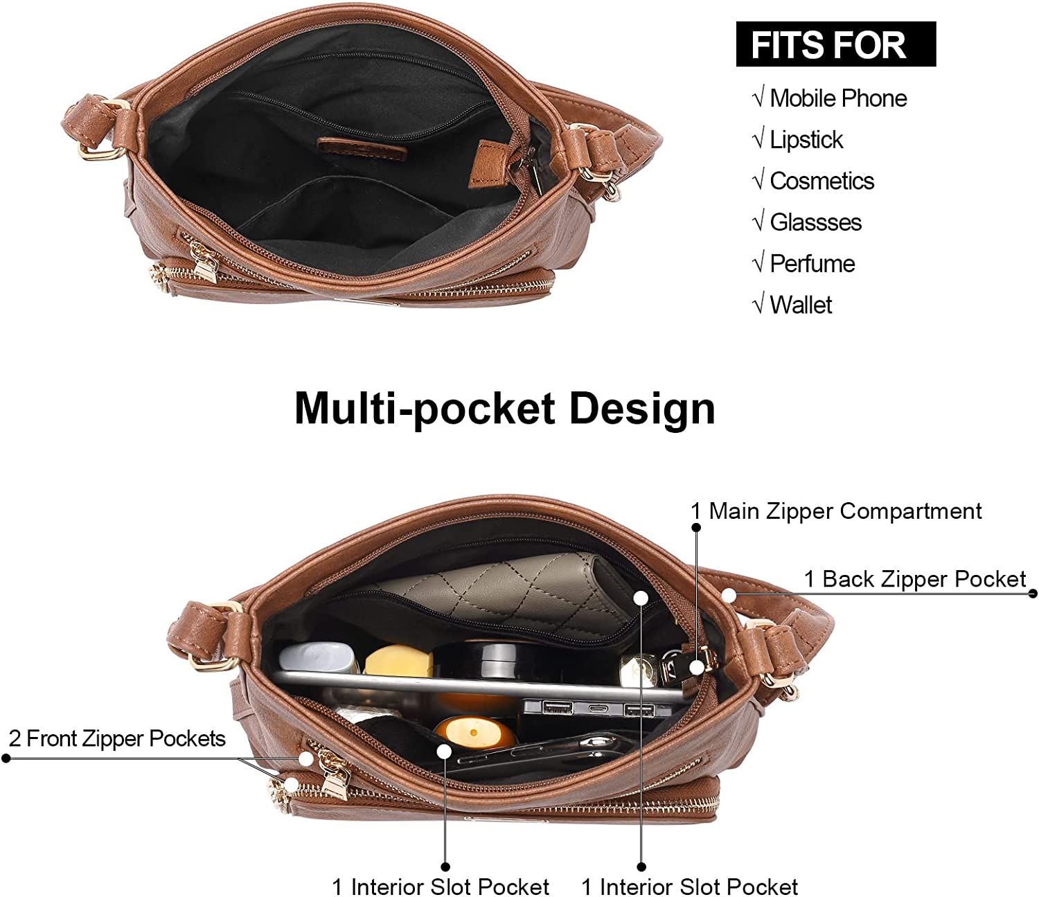 【Multi-pocket Design】: Women’s small shoulder purse has 1 Main Zipper Compartment, 2 Front Zipper Pockets, 1 Back Zipper Pocket, 1 Interior Slot Pocket, 1 Interior Zipper Pocket. Maintaining small wallets, mobile phones, keys, sunglasses and other daily small essentials is well organized.