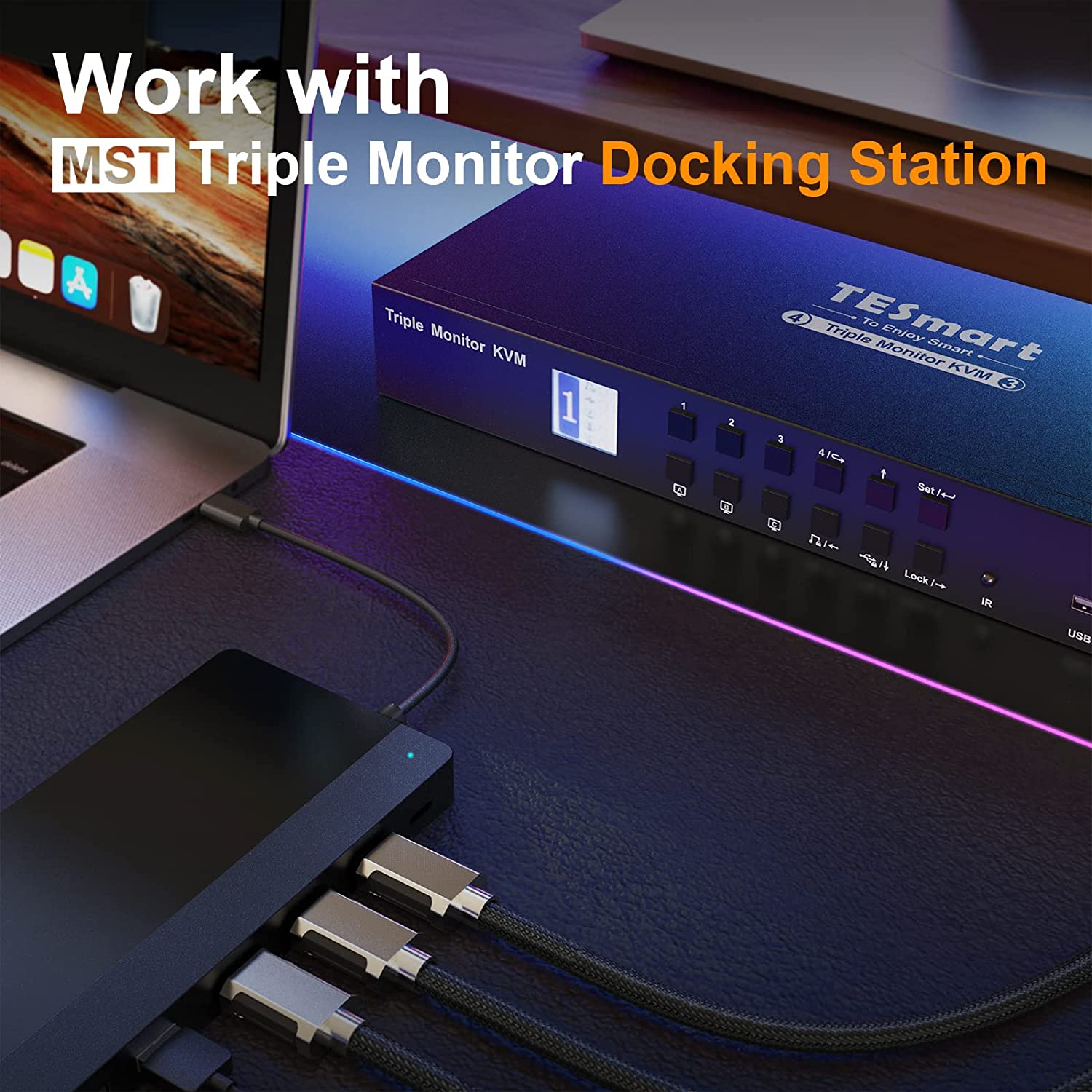 【Work with MST Triple Monitor Docking Station】 Don't worry about not having enough ports on Laptops. You can match the MST docking station with three outputs to achieve triple monitor function. Make sure to use reliable adapters if needed to avoid display issue.