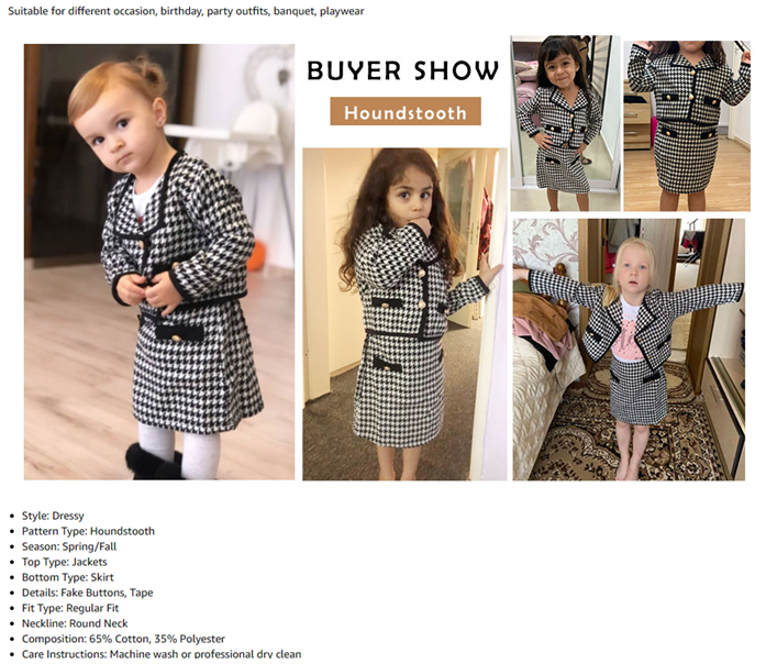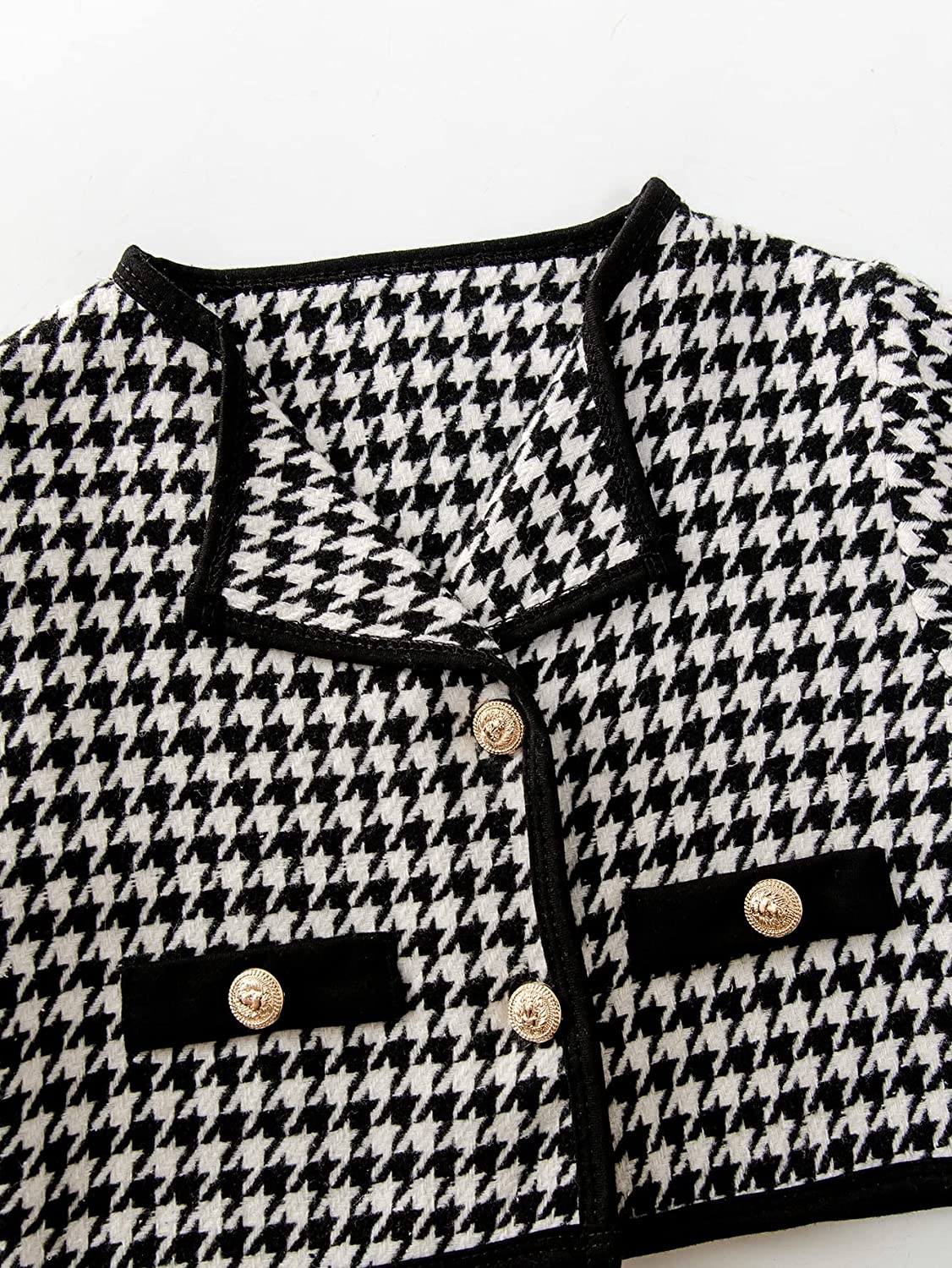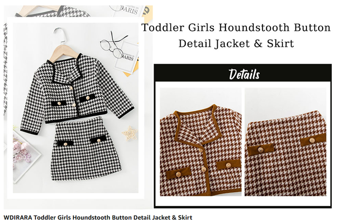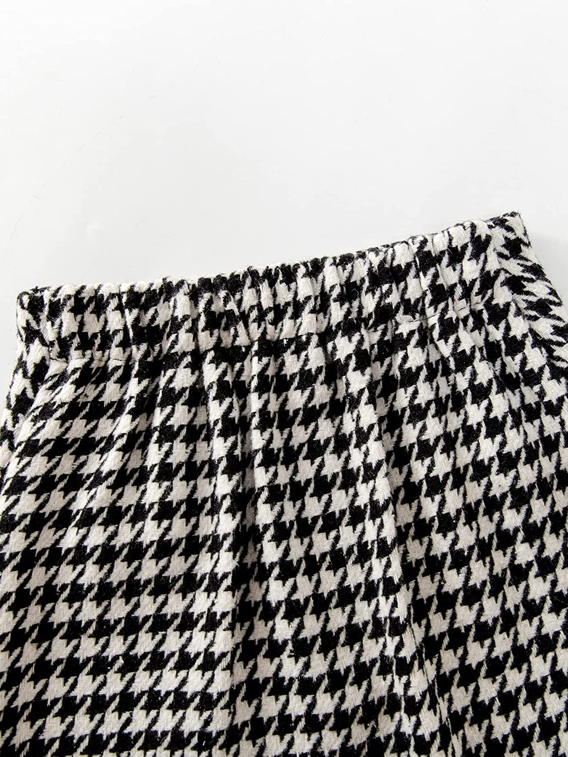 WDIRARA Toddler Girl's 2 Piece Houndstooth Button Front Long Sleeve Round Neck Jacket and Skirt Outfits Set