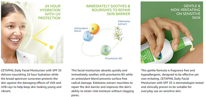 - Cetaphil Daily Facial Moisturizer SPF 35: Three-in-one facial moisturizer hydrates, nourishes and protects sensitive, combination skin