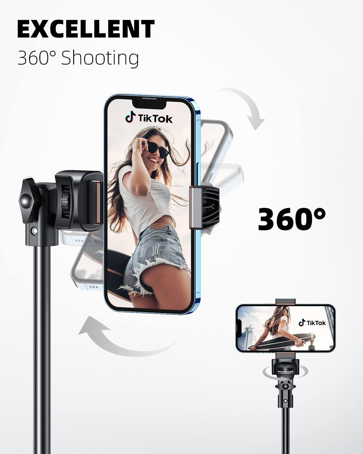 • Wireless Shooting, Free Creation: With updated sensor chip, the wireless clicker can connect to your phone in 1 second, no traditional disconnecting problem. Taking satisfying photos and videos within 33ft/10m is piece of cake with this cell phone tripod.