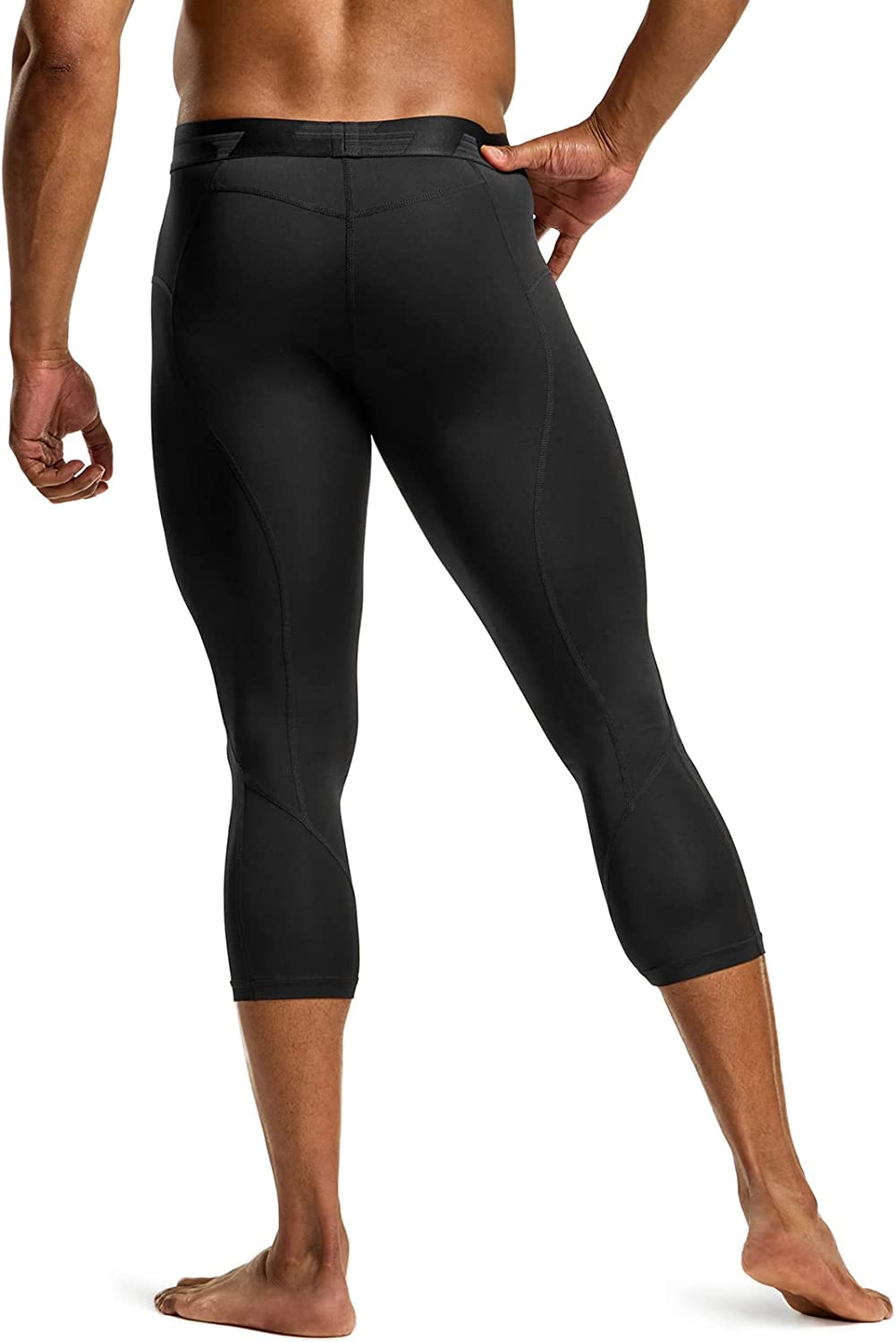 TSLA Men's 3/4 Compression Pants, Running Workout Tights, Cool Dry Capri Athletic Leggings, Yoga Gym Base Layer