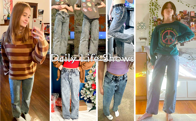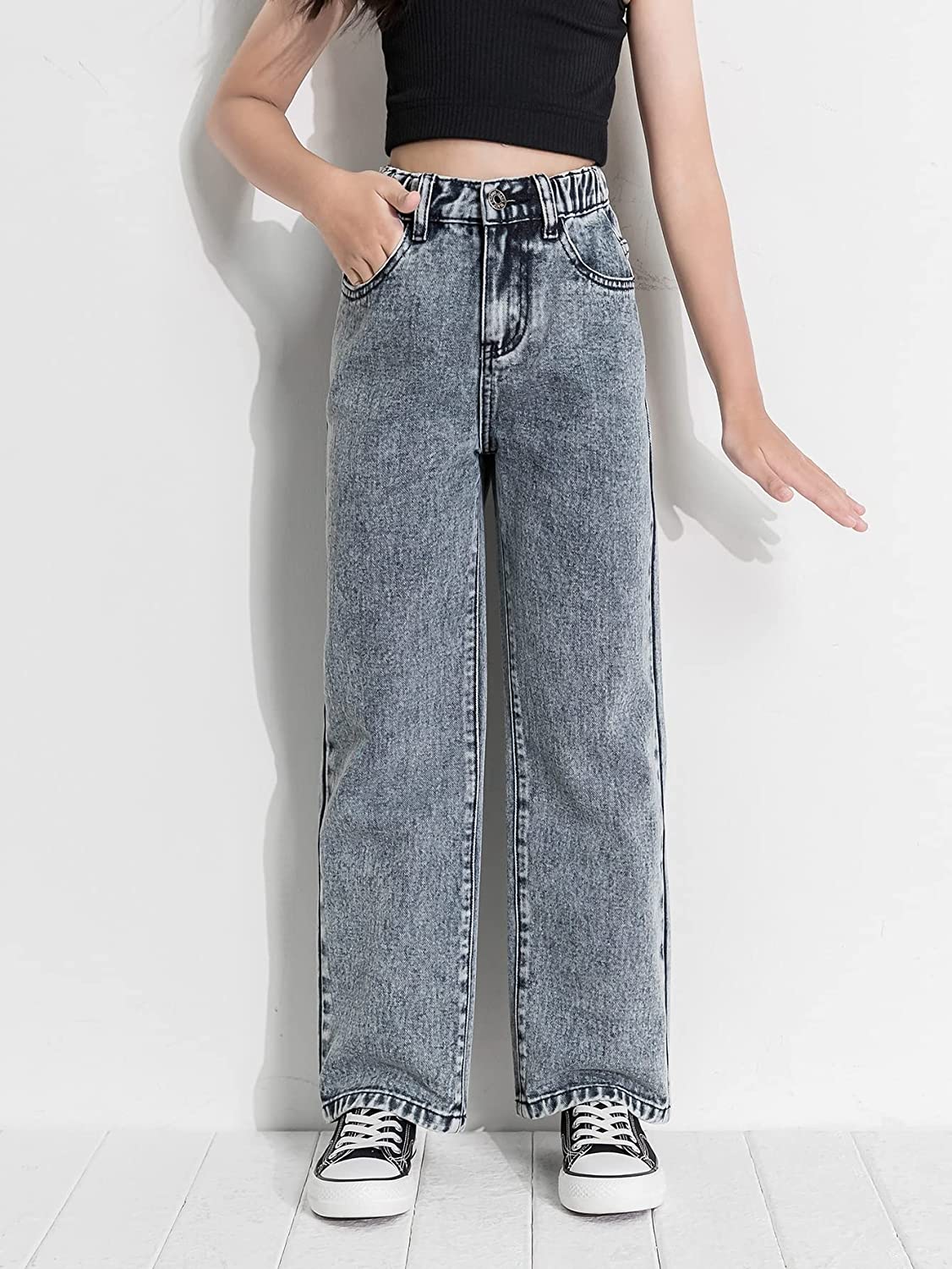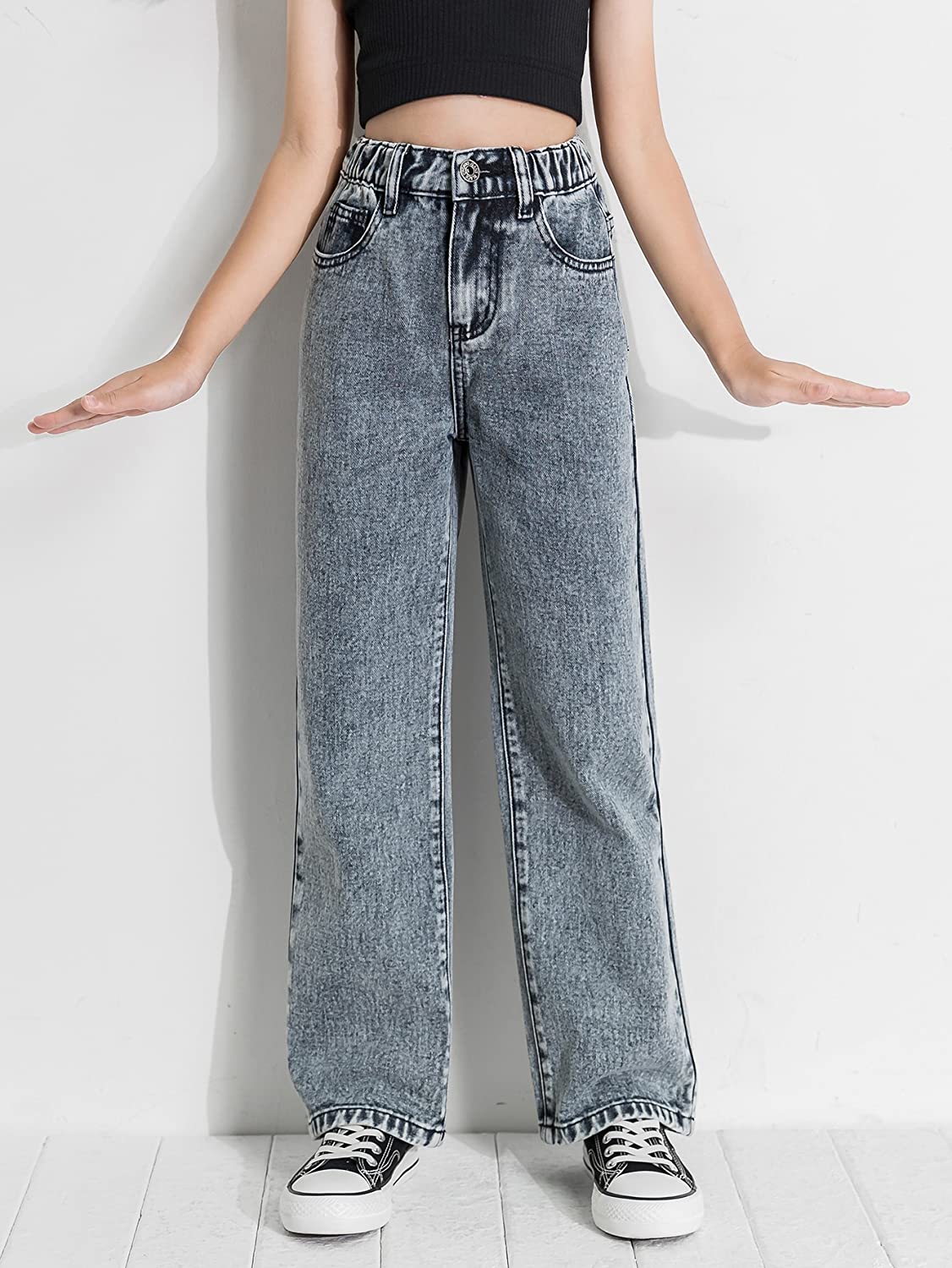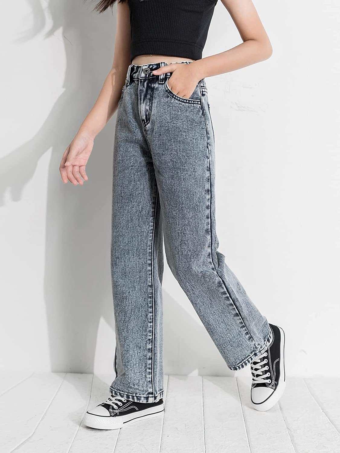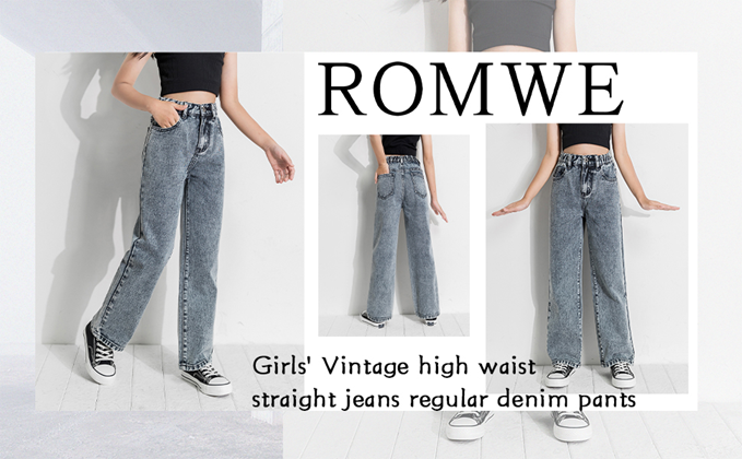 Romwe Girl's Vintage High Waisted Straight Leg Jeans Regular Fit Denim Pants