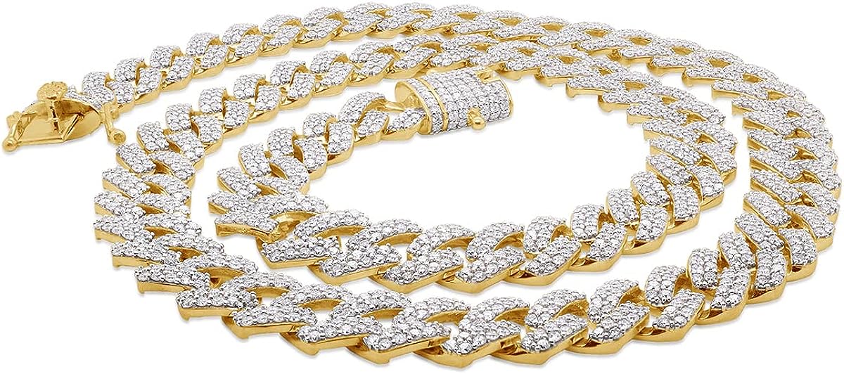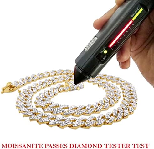 SAVEARTH DIAMONDS Certified 20 Cttw to 26 Cttw Round Cut Lab Created Moissanite Diamond 12MM Width Cuban Chain Necklace In 14k Gold Over Sterling Silver 18" to 24" Length, G-H/VVS1