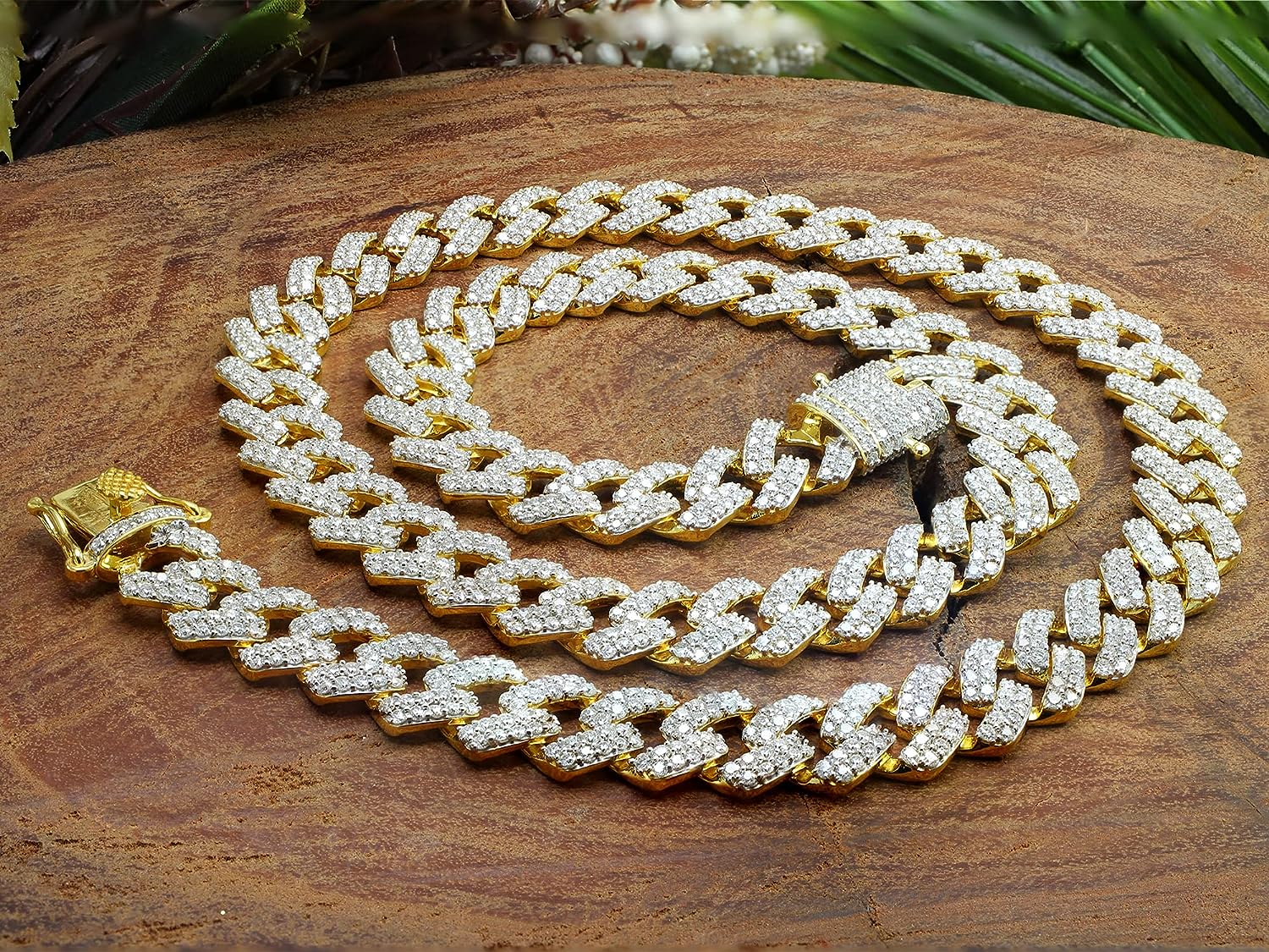• These Cuban Chain Necklace Is crafted in 14k Rose Gold Over Sterling Silver with 925 Sterling Silver 18" , 20.00 Carat (Cttw) moissanite, Width 12MM, Round Cut, VVS1 Clarity G-H Color, Very Good Cut