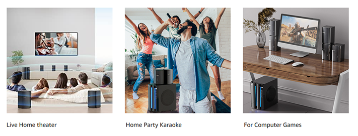 - Multiple Application: Easily plug and play, speakers are widely used for numerous scenarios such as Ultra HD 4K TV, game console, home DVD, computer, laptops, Projector. It's very suitable for watching movies, watching football games, partying, and e-sports games with friends at home