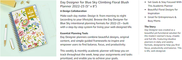 Whether you're a working professional, full-time mom, a teacher or a diligent student, it’s easy to feel overwhelmed and pulled in a million directions. Day Designer for Blue Sky is a simple and easy system created to help you find balance, focus and productivity. This planner isn't magic and it can't live your life for you. But it can, through a simple, guided framework, help you figure out a focus for intentional living. It can be a trusted tool for setting goals, creating a plan and taking action each and every day. This exceptionally built planner exudes quality, design elements and inspired productivity in one well-organized ensemble. It will teach and guide you with a clear path and directions to organize your day, your tasks, assignments, and to-dos to achieve your goals. This academic planner is ideal for business professionals, teachers, professors, administrators, students or anyone involved in education. You will feel more organized and in charge of your hectic schedule, while carrying this harmoniously built Day Designer for Blue Sky planner. The Climbing Floral Blush pattern with gold foil detail will make a subtle fashion statement with friends and peers around you. A well-designed day is a well-lived life! Blue Sky creates modern and sophisticated organizational planners and calendars to fit the scheduling needs of busy people - whether business professionals, college students, teachers, or anyone with appointments to make note of. Keep your life organized with our full line of products including desk pad calendars, wirebound tabbed weekly and monthly planners with contacts and notes pages to accommodate your scheduling needs, and laminated two-sided wall calendars, all in a variety of colors and patterns to suit your lifestyle and personality.