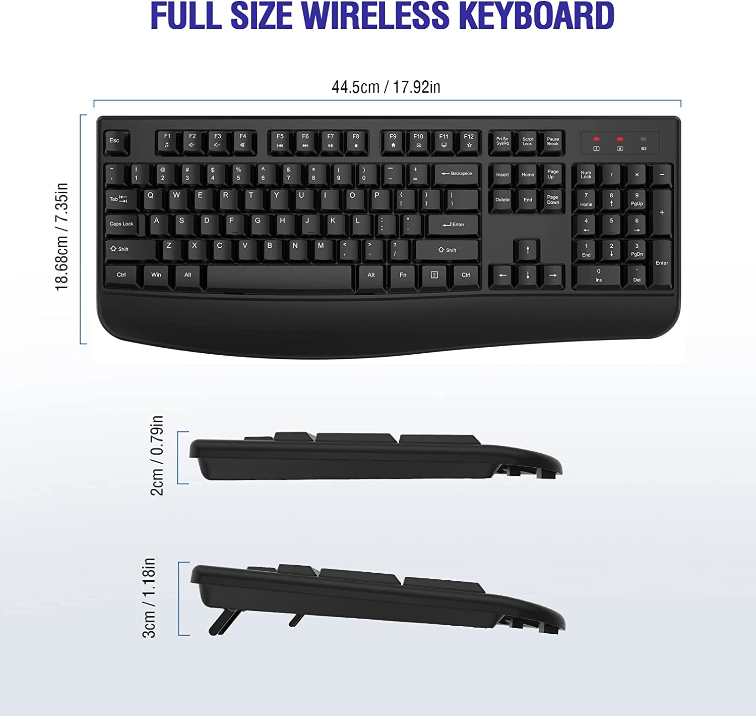 Loigys Wireless Keyboard, 2.4G Full-Sized Ergonomic Wireless Computer Keyboard with Wrist Rest for Windows, Mac OS Laptop/PC/Desktop/Notebook (Black)