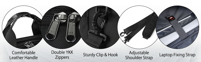 - ?【Waterproof Material & Practical Design】Featuring waterproof & tear-resistance polyester fabric, the overall construction of laptop case is durable and well stitched. Thick foam laptop compartment with a laptop fixing strap can provide protection for your 17.3inch gaming laptop from collisions and impacts. Smooth YKK double zippers are easy to open and help you access items quickly. Sturdy clips & hooks can realize the free conversion in carry way from handbag to shoulder bag or messenger bag.