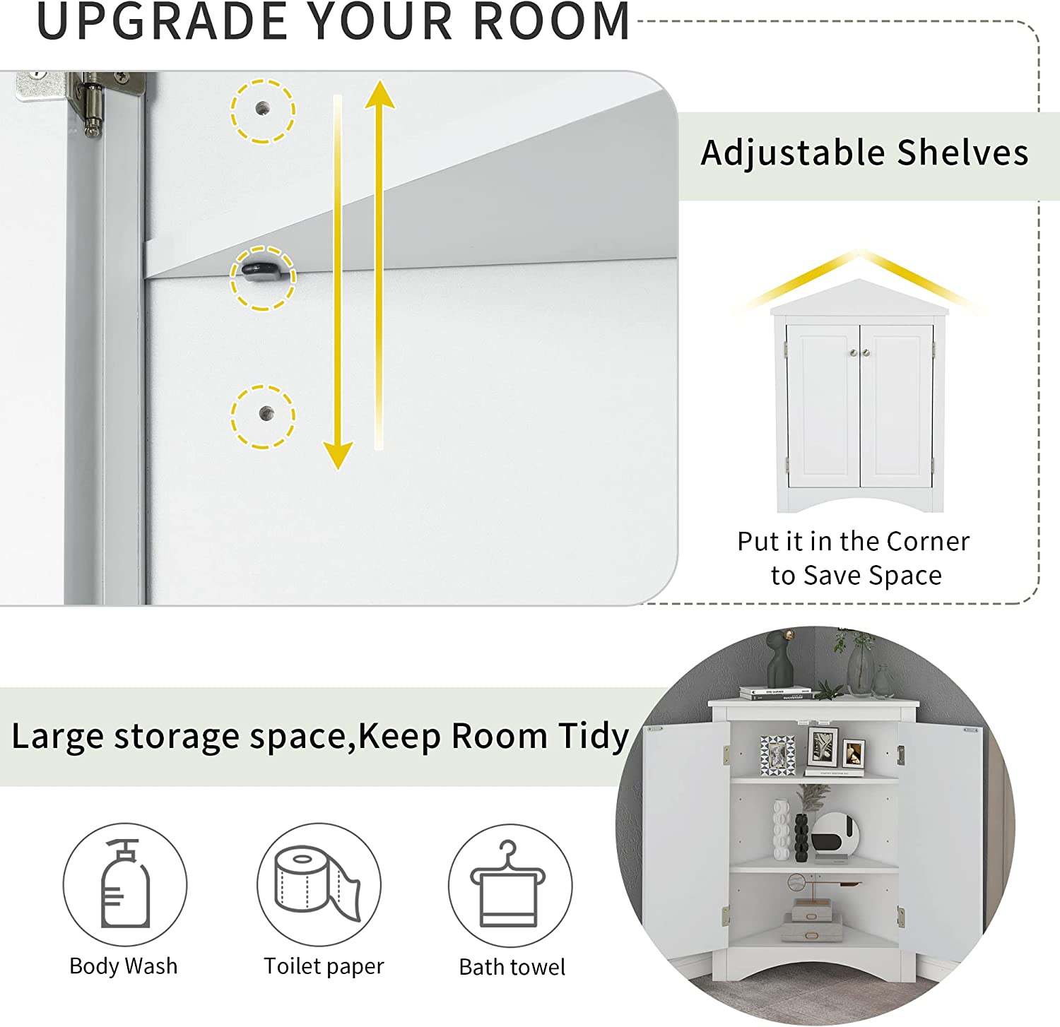 ★GREAT-QUALTY MATERIAL: Made of high dendity MDF boards, this corner cabinet is durable and can be used for many years. The surface is smooth and water-proof, which reduces much trouble when you do cleaning. Metal hardware not only ensures long-term durablity but also adds more sleek elements to your home.