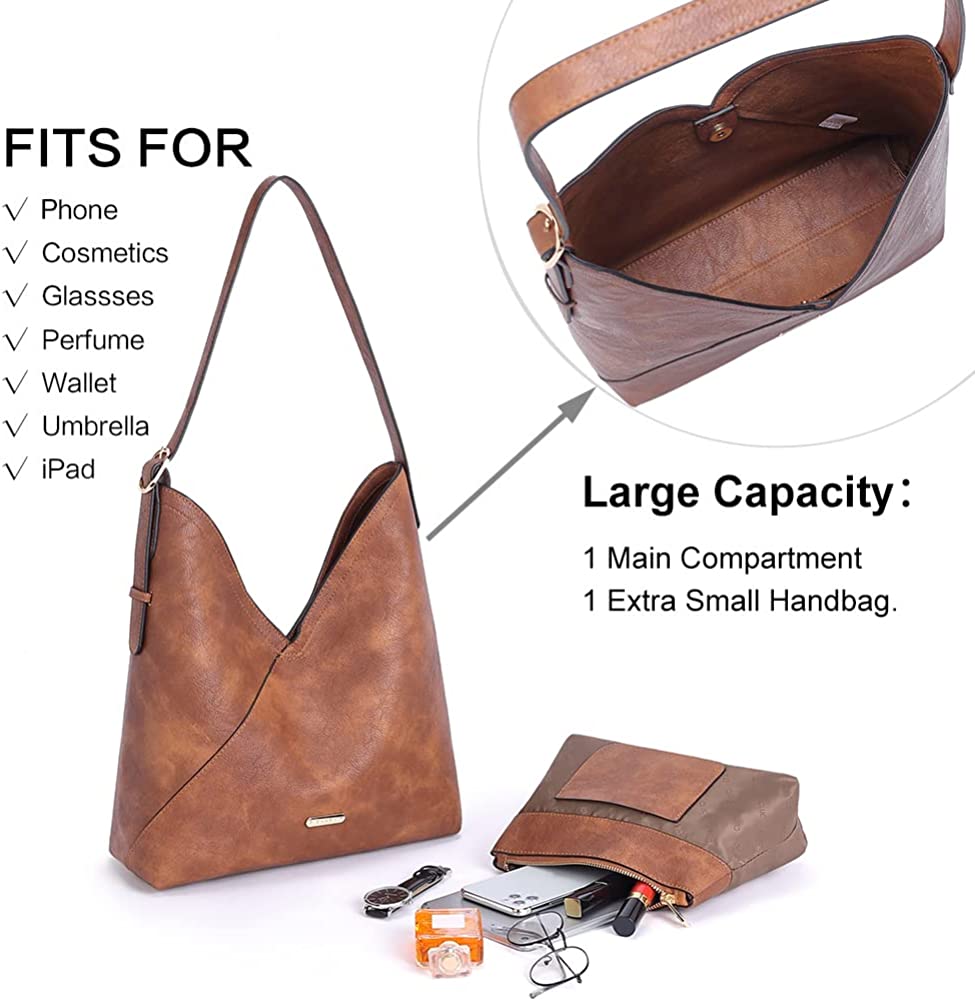 【Large Capacity】:1 main compartment + 1 extra small handbag. Classy buckles on the women tote bag handles will give you more room. Adjustable shoulder strap which long enough to go comfortably on your shoulder. Plenty of room for carry study supplies, wallet, calendar, cosmetics, personal items.
