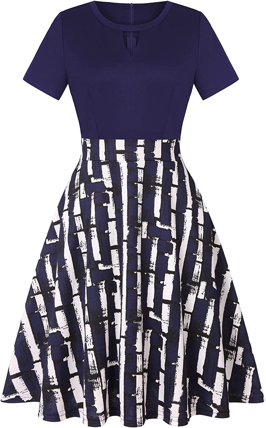 • UNIQUE KEYHOLE CUTOUT DESIGN AND FUNCTIONAL POCKETS:This women's casual vintage swing party cocktail dress have nice hidden pockets on both sides,great for carry your small things,such as phone or useful items. 1950s Vintage work dress style, complements the very best of you with sexy keyhole cutout add some pizzazz,so flattering that makes you more charming.