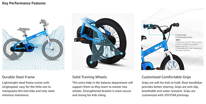 - Grow with Kids: Equipped with detachable training wheels, a height-adjustable saddle and handlebar, this kids bicycle can meet the needs of your child at different stages and grow with them. As your kids grow in confidence they can move to the next challenge.