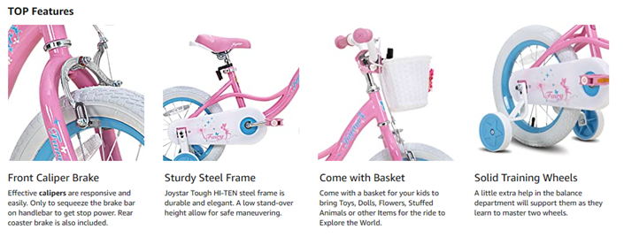 JOYSTAR Fairy girls bicycle is a perfectly comfortable bike, suitable for your little one to use around your backyard, or your patio while you water your plants. This children’s bicycle is designed with an easy stand over frame that has proven to be a comfortable fit for many young riders around the world.