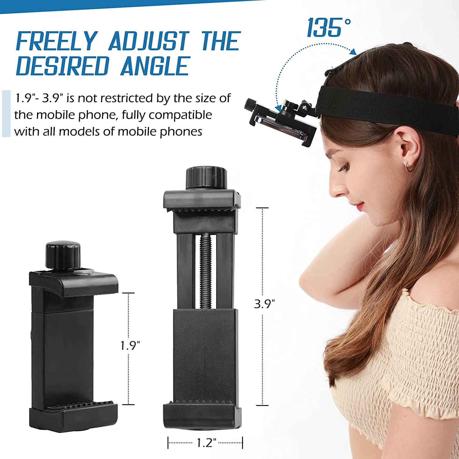 • ?【Flexible angle adjustment】: iphone head holder and neck mount phone holder have flexible angle adjustment function. The phone head strap mount can be adjusted to various sizes and can be worn on a helmet or directly tied to the head to take continuous shots