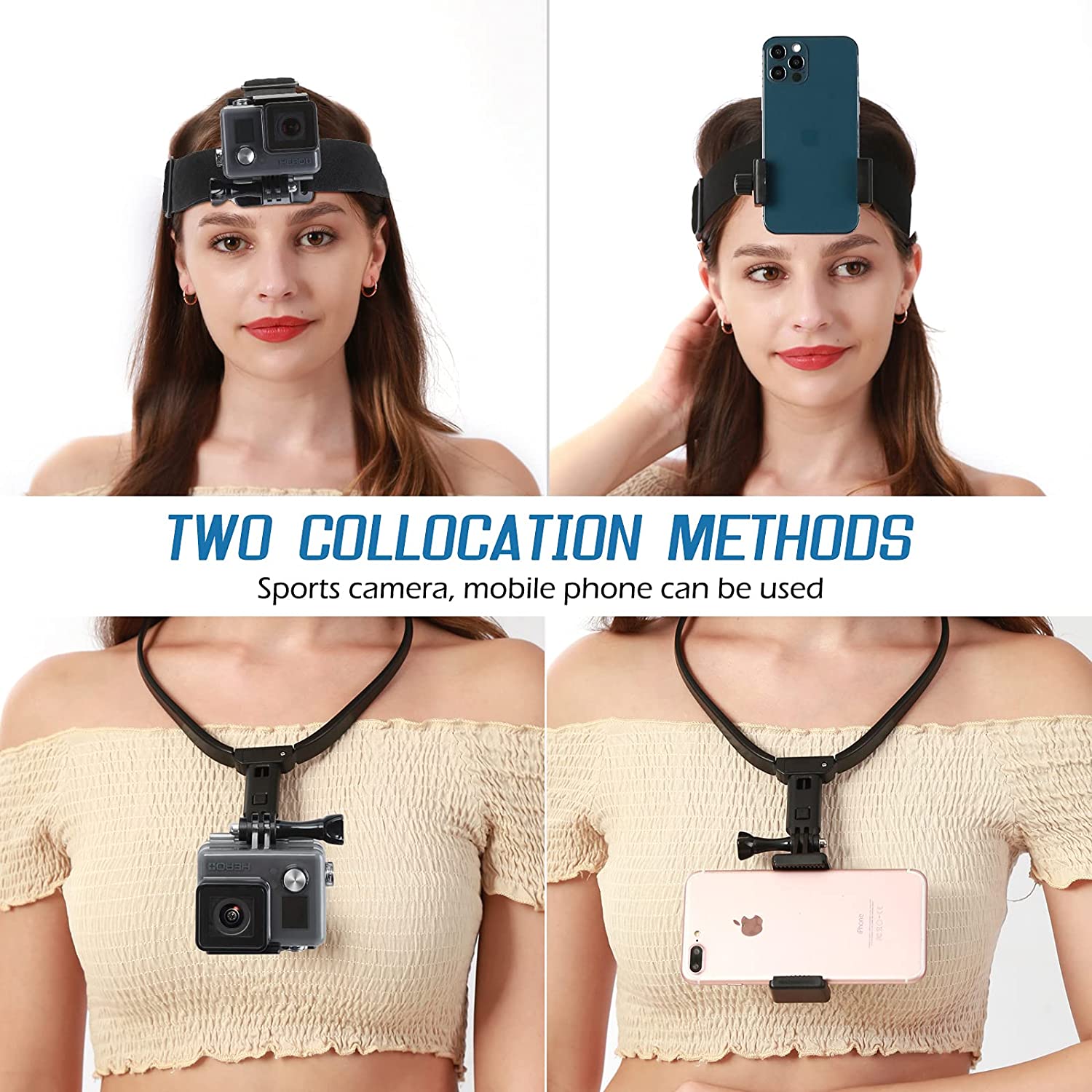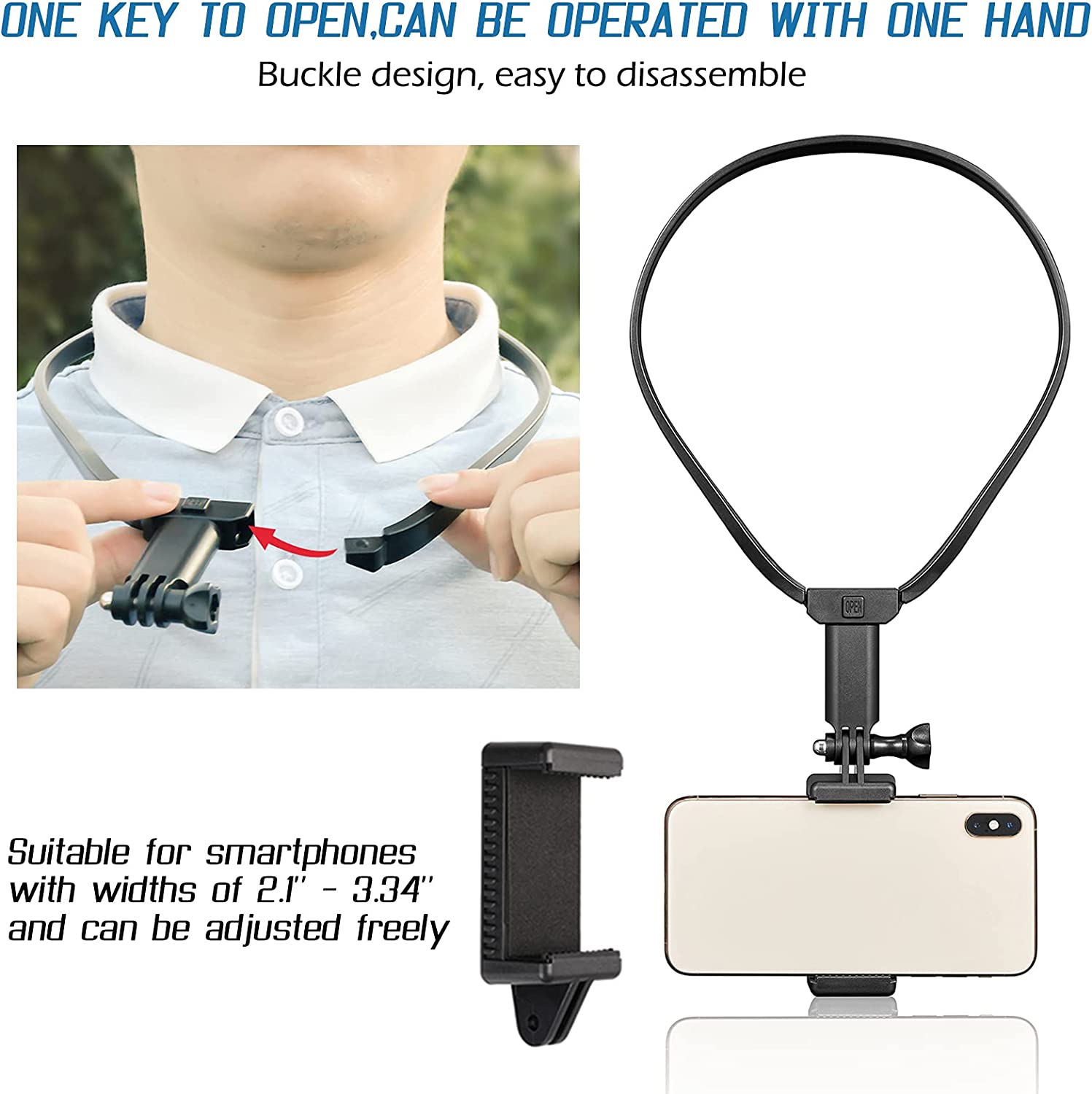 Mobile Phone POV/VLOG Neck Holder and Head Strap Mount Kit,Compatible with iPhone 12 11 Pro Max Plus,GoPro Hero 9, 8, 7, 6, 5,OSMO Action, AKASO,Action Camera and Cell Phone Video Shoot Accessories