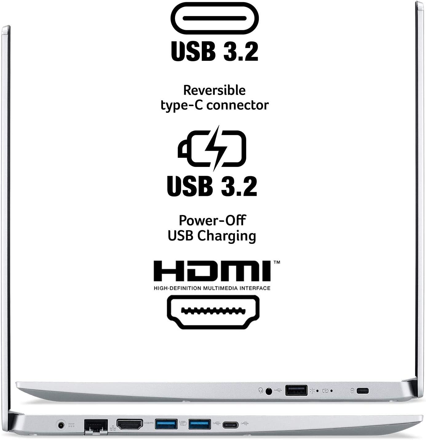 Acer Aspire 5 A515-45-R1YC comes with these high level specs: AMD Ryzen 5 5500U Hexa-Core Mobile Processor 2.1GHz with Precision Boost up to 4.0GHz (Up to 8MB L3 Cache), 15.6" Full HD (1920 x 1080) widescreen LED-backlit IPS Display, AMD Radeon Graphics, 8GB DDR4 On-Board Memory, 256GB NVMe SSD, 1 - Available Hard Drive Bay, True Harmony Technology, Two Built-in Stereo Speakers, Acer Purified.Voice Technology with Two Built-in Microphones, Intel Wireless Wi-Fi 6 AX200 802.11ax Dual-Band 2.4GHz and 5GHz featuring 2x2 MU-MIMO technology, 10/100/1000 Gigabit Ethernet LAN (RJ-45 port), Bluetooth 5.0, HD Webcam (1280 x 720), 1 - USB 3.2 (Type-C) Gen 1 port (up to 5 Gbps), 2 - USB 3.2 Gen 1 Ports (one with Power-off Charging), 1 - USB 2.0 Port, 1 - HDMI 2.0 Port with HDCP support, Backlit Keyboard, Lithium-Ion Battery, Up to 11-hours Battery Life, Windows 10 Home, 3.88 lbs. | 1.76 kg (system unit only) (NX.A84AA.002)