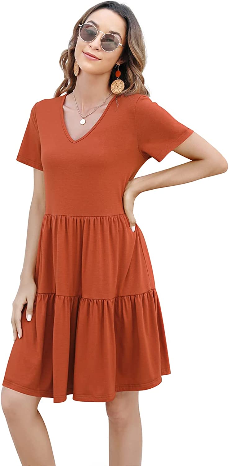 Match: Ruflle tunic flowy dresses for women is great pair with high heels, sandals or boots, tights, leggings, hat, or simply laying with coats, jackets in spring, fall and winter. You will leave a fantastic impression on vacation. Above knee length floral dress and flowy swing shift A-Line dress make you elegant and radiant. Super cute and beautiful babydoll mini dress can add your vitality and also nice for juniors dresses.