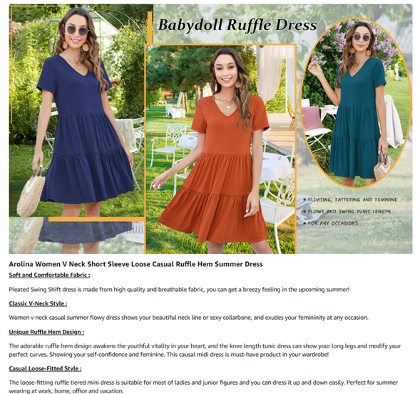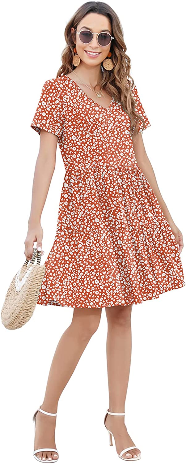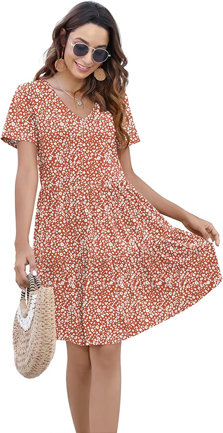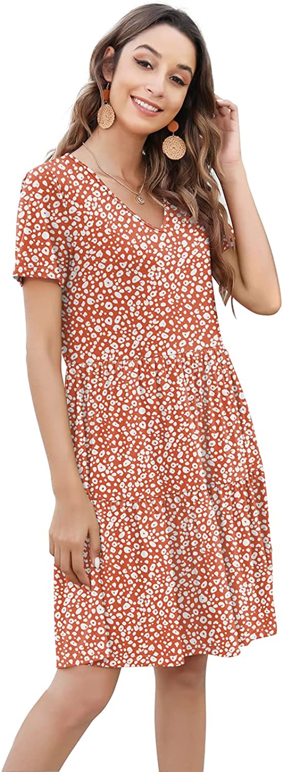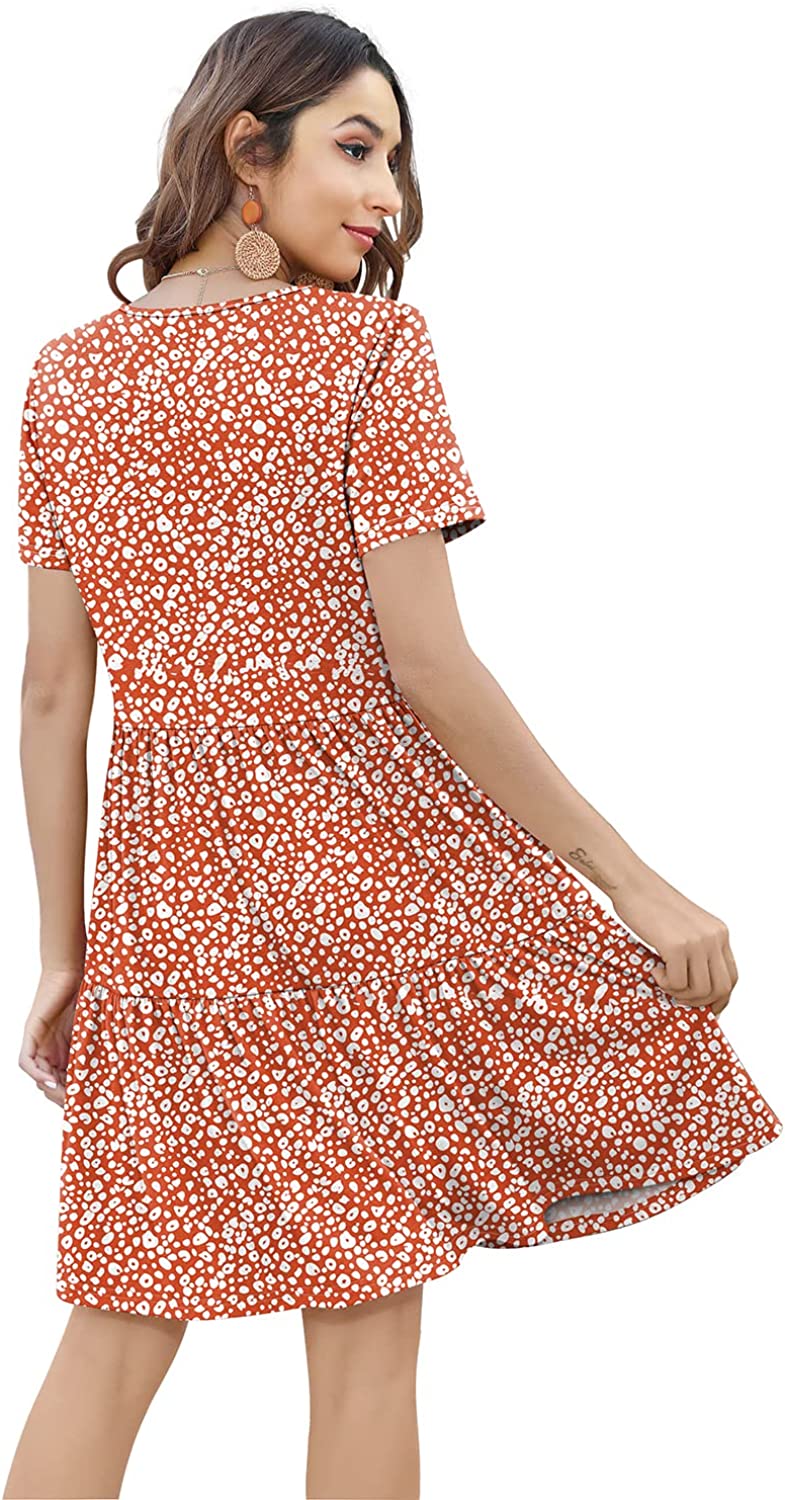 Arolina Women's Casual Swing Shift Dress Summer V Neck Short Sleeve Babydoll Ruffle Dress Tunic Dress