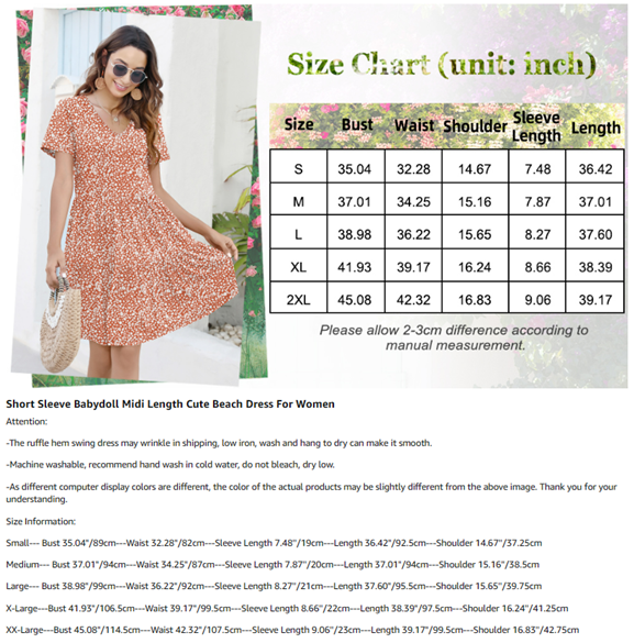 • Notes: Machine or hand wash with cold water, do not bleach, no dry clean. No wrinkle, no shrinkage, no fading. Please refer to size chart carefully before purchasing this sun dress/sexy dresses for women/sun dresses women summer casual/floral dress for women/tshirt dresses for women/boho dress for women.